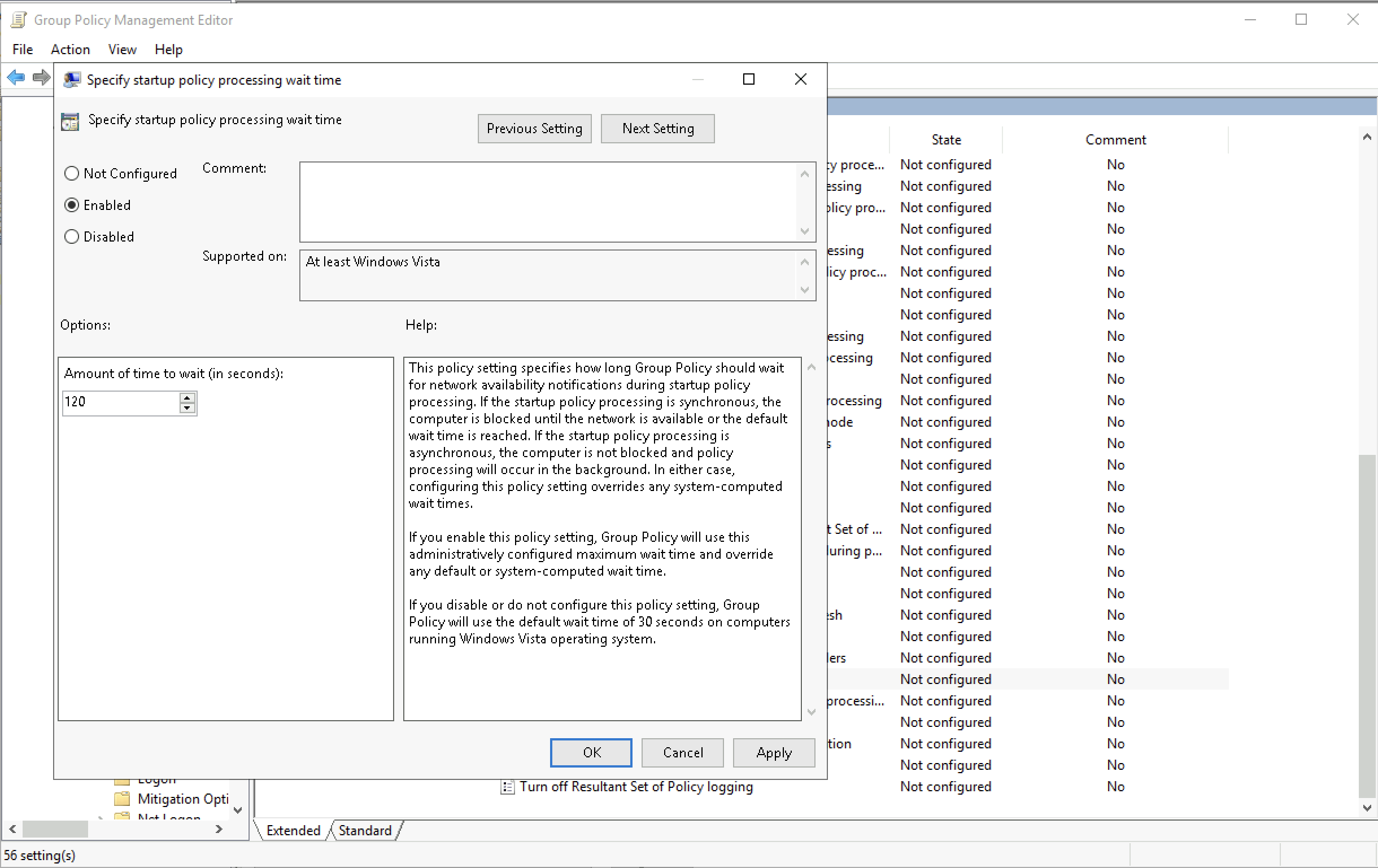 Enable it and give the wait time a value of 120 seconds