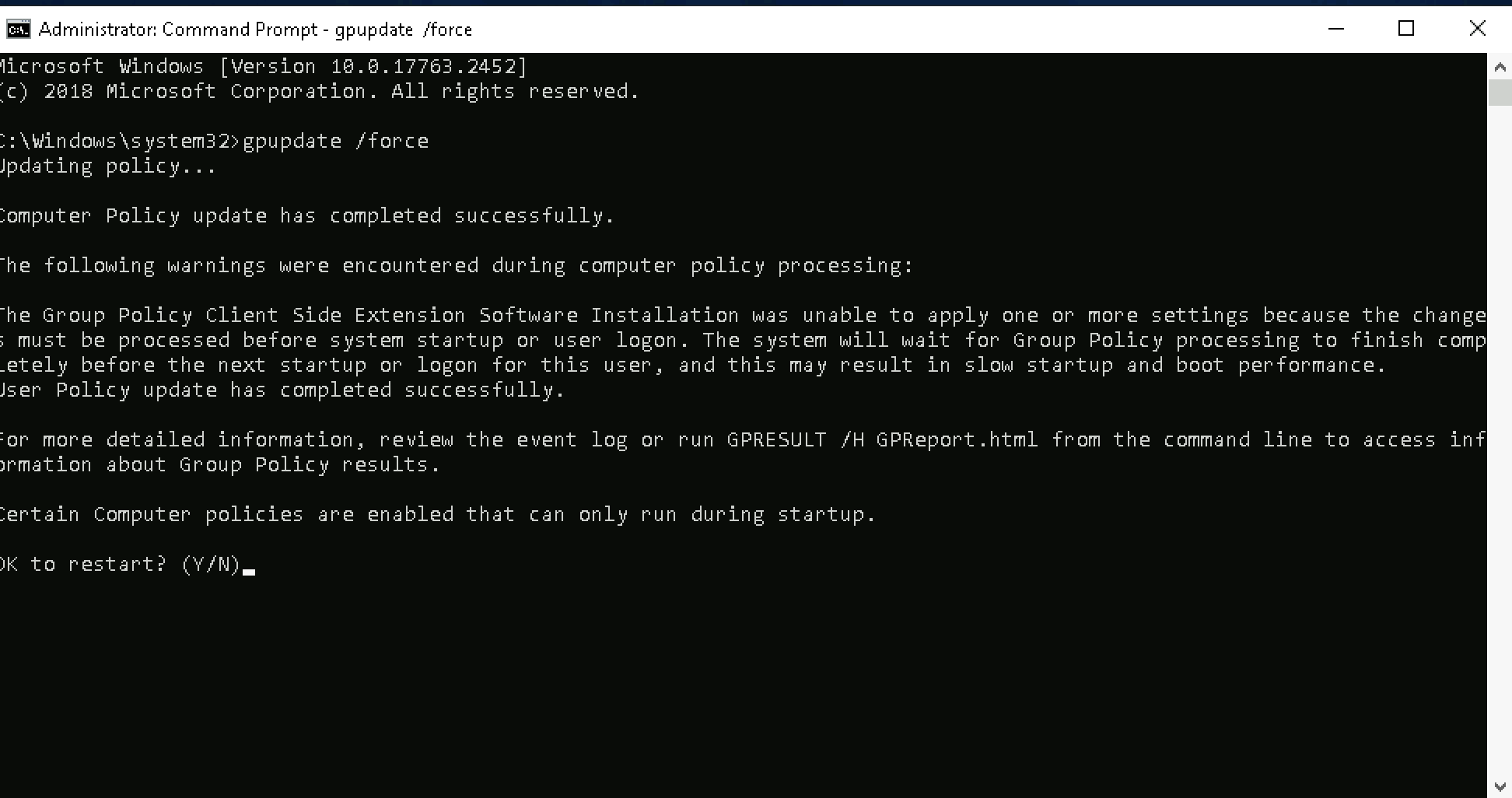 At this point, rebooting the computer should apply the GPO, but running gpupdate /force works too