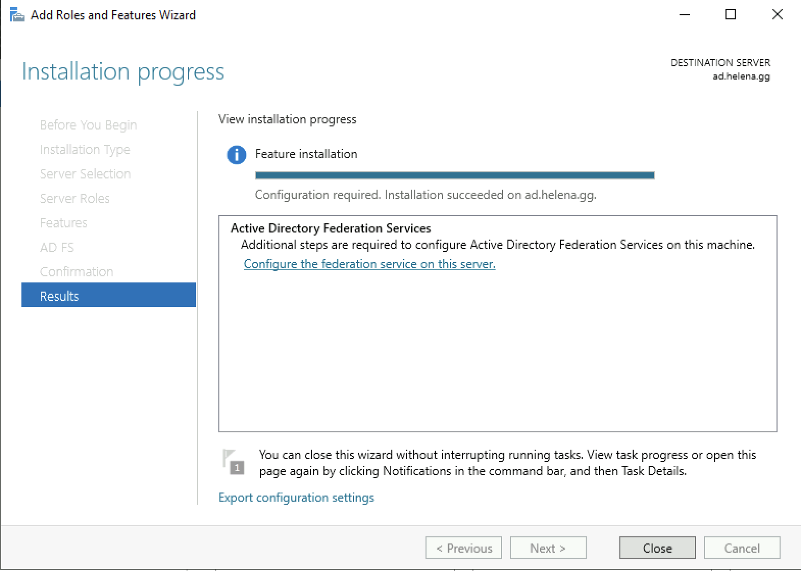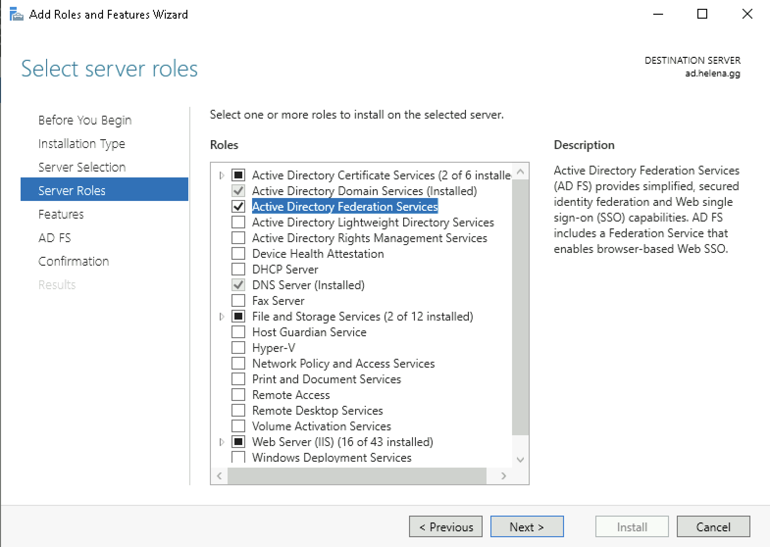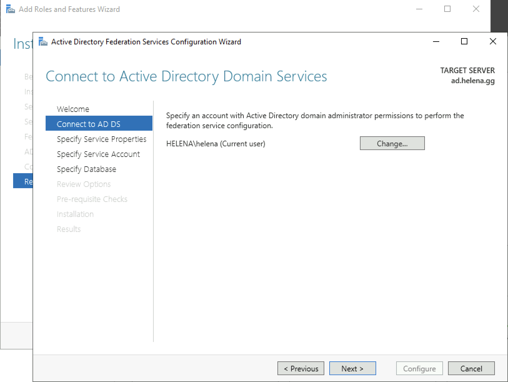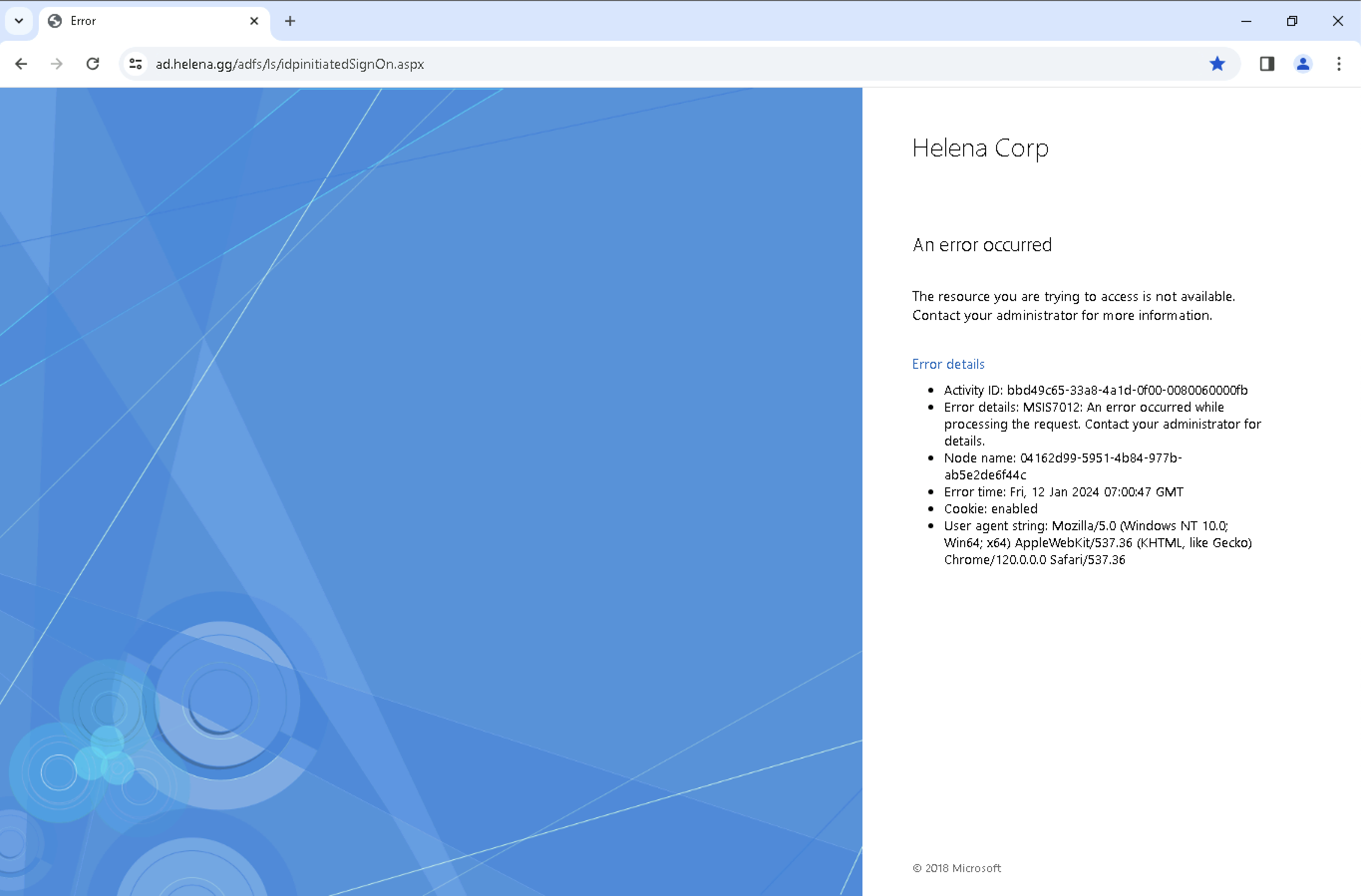 At this point, the adfs page should be up but with an error saying the resource is not available