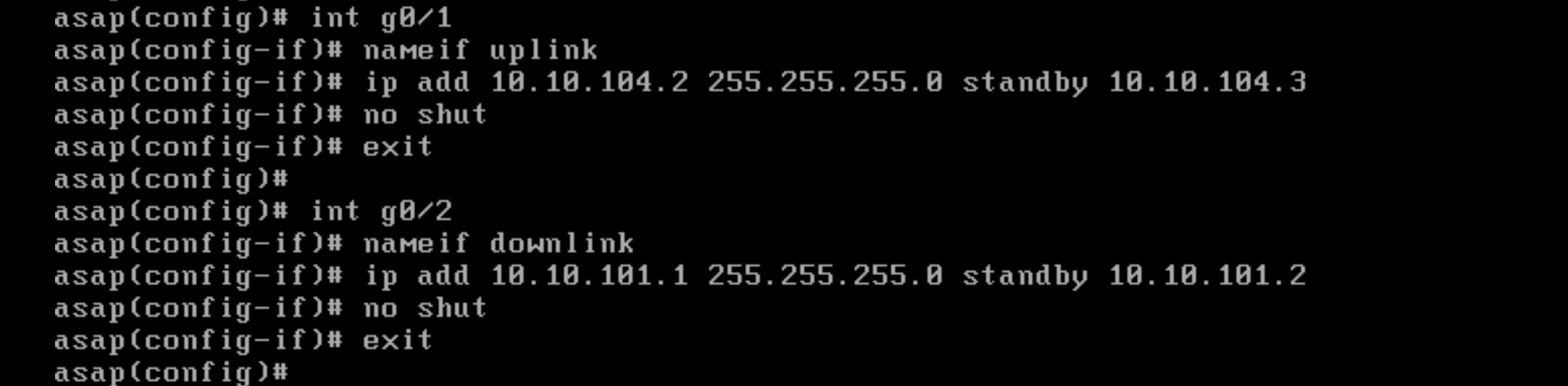 ip add 10.10.101.1 255.255.255.0 standby 10.10.101.2 255.255.255.0