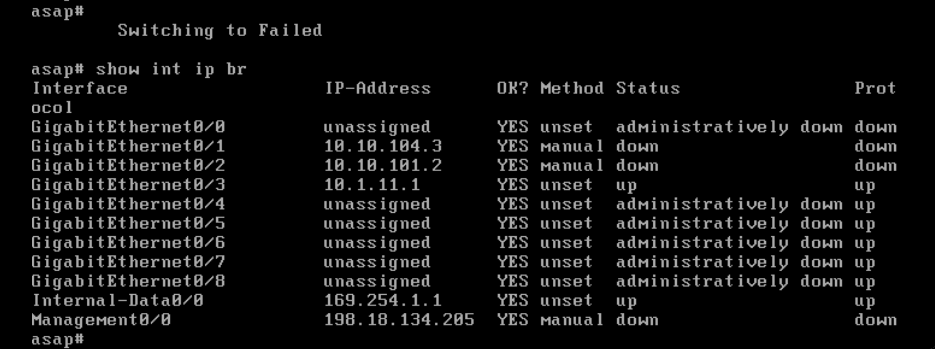 Then unshut the G0/3 interface for the failover configuration to activate