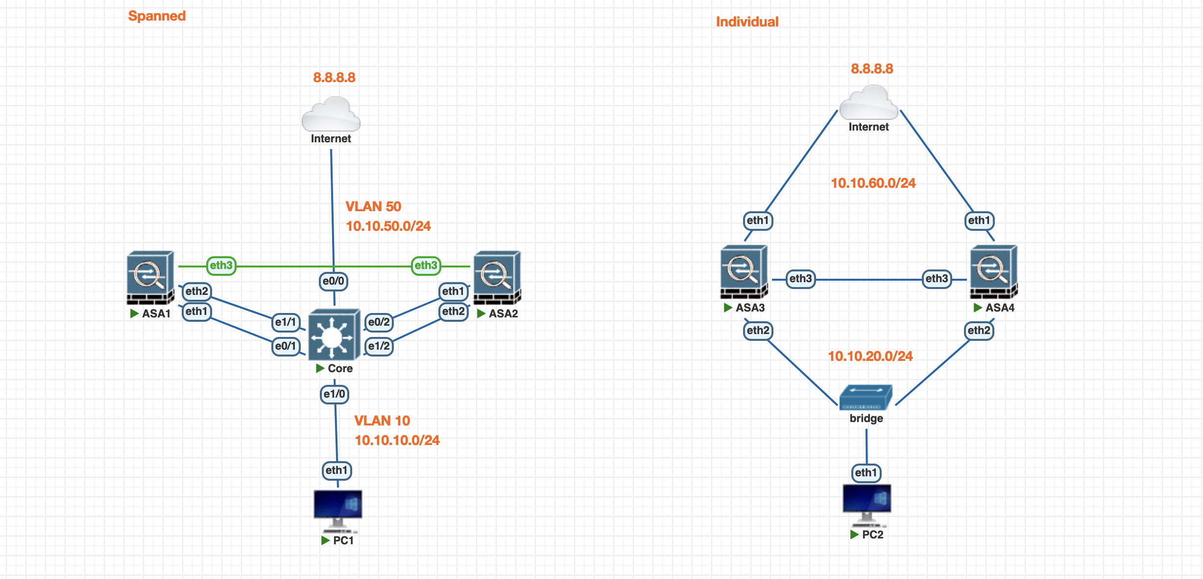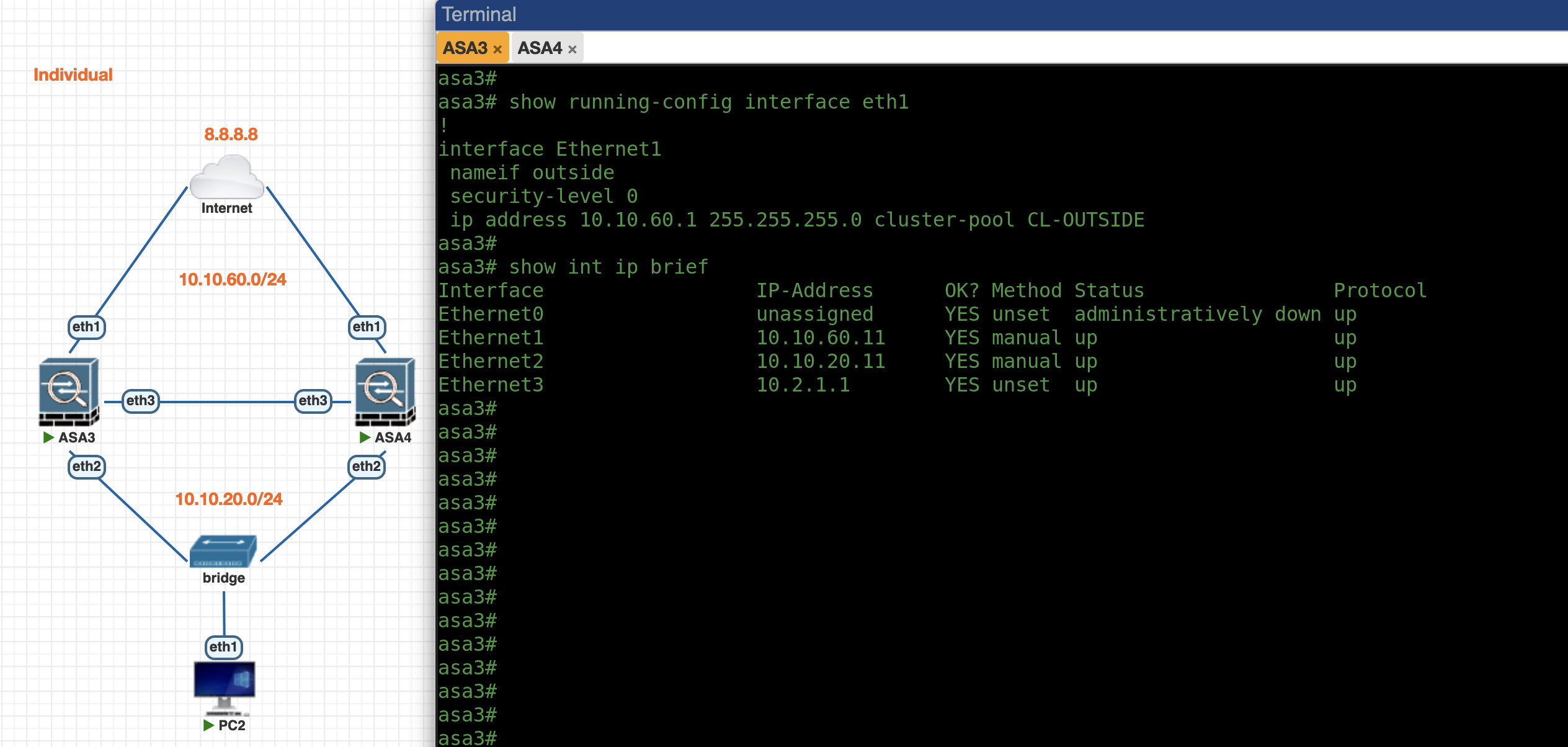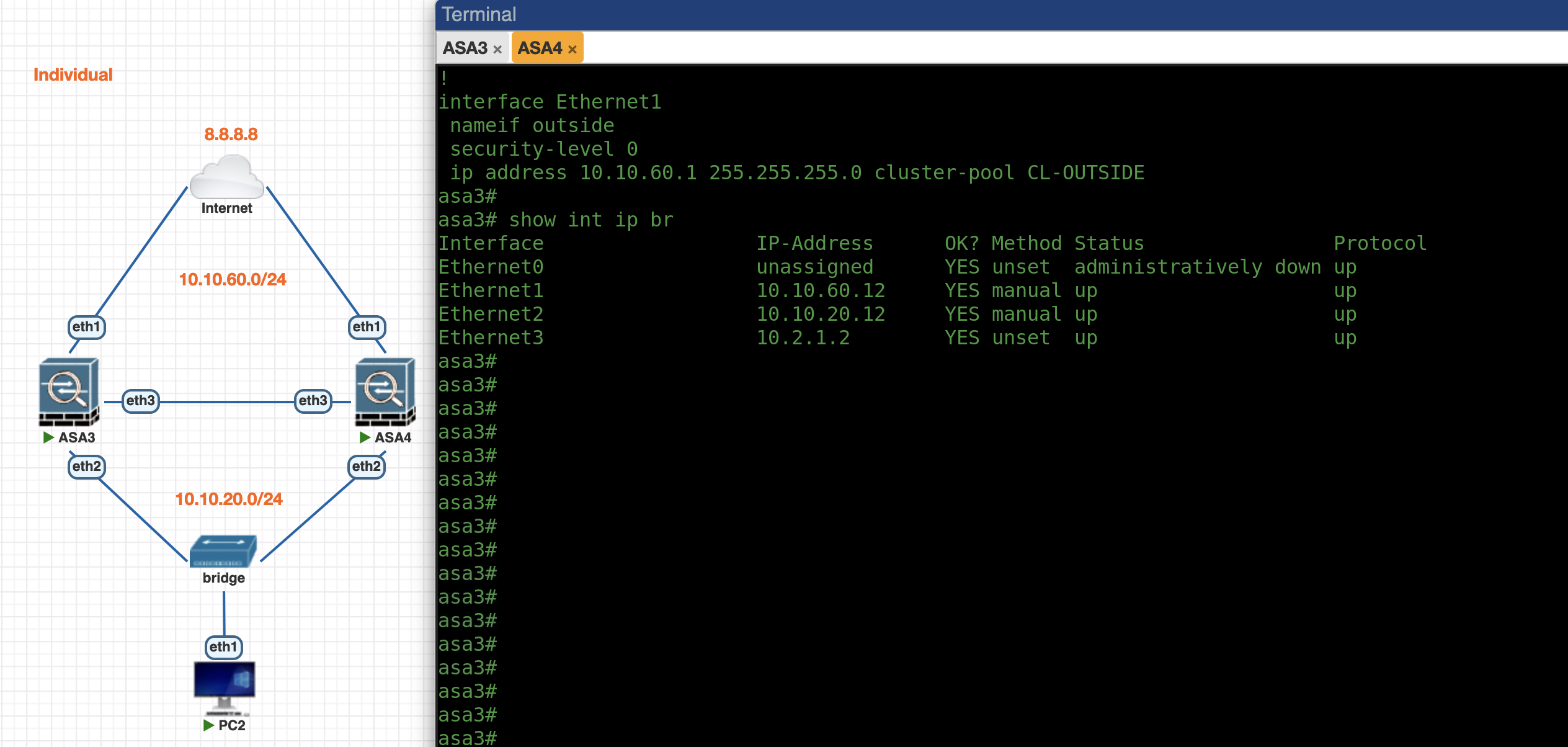 First lets enable Individual Mode Cluster on ASA3, the config is pretty much the same as previously