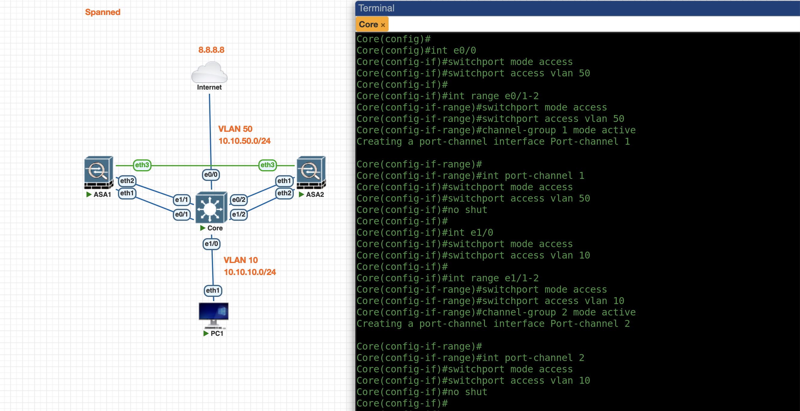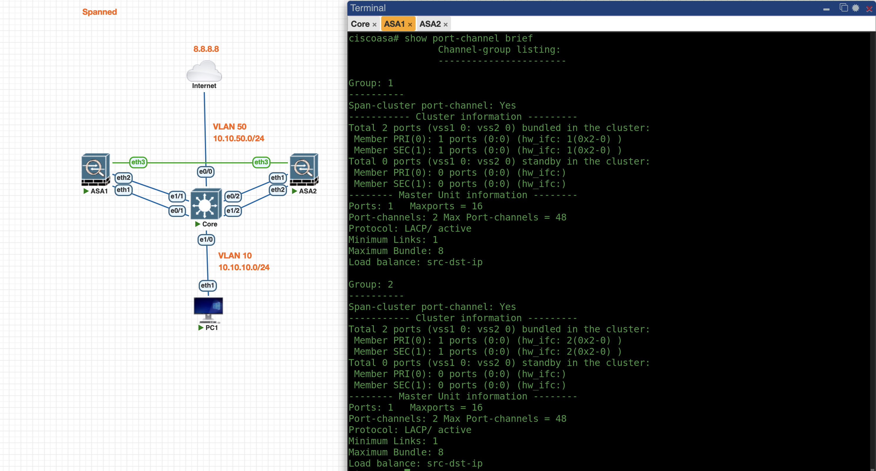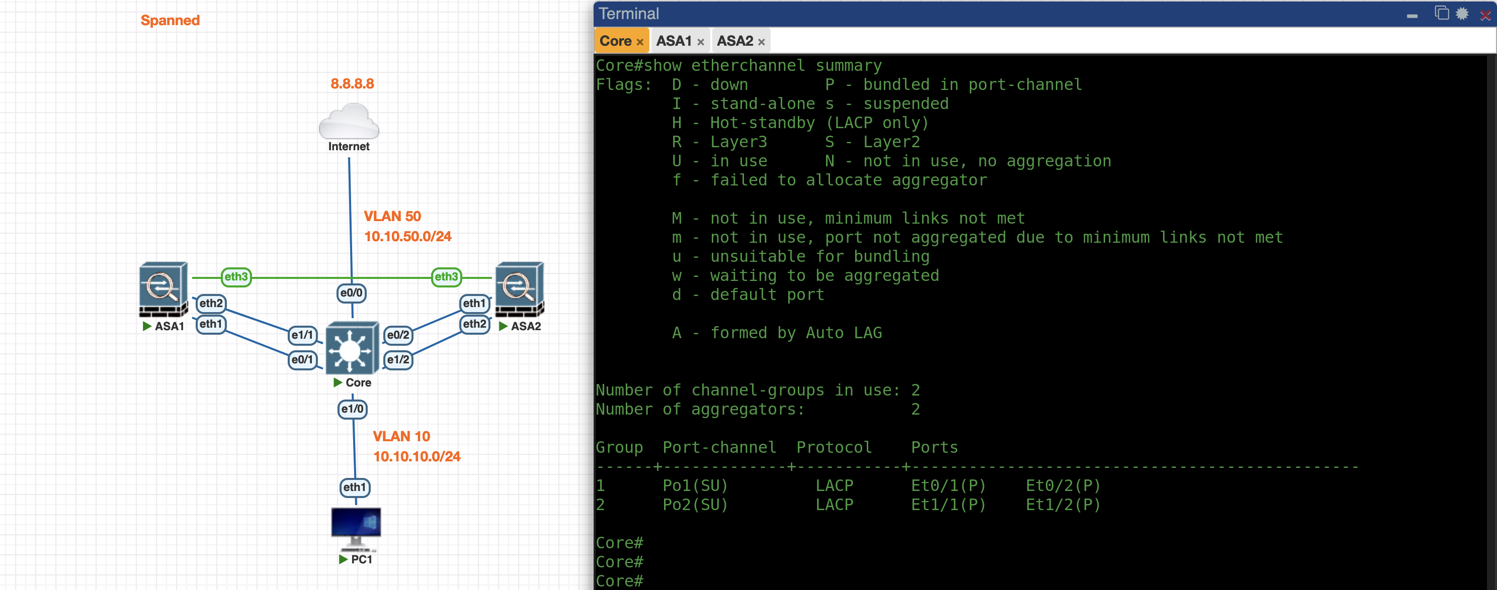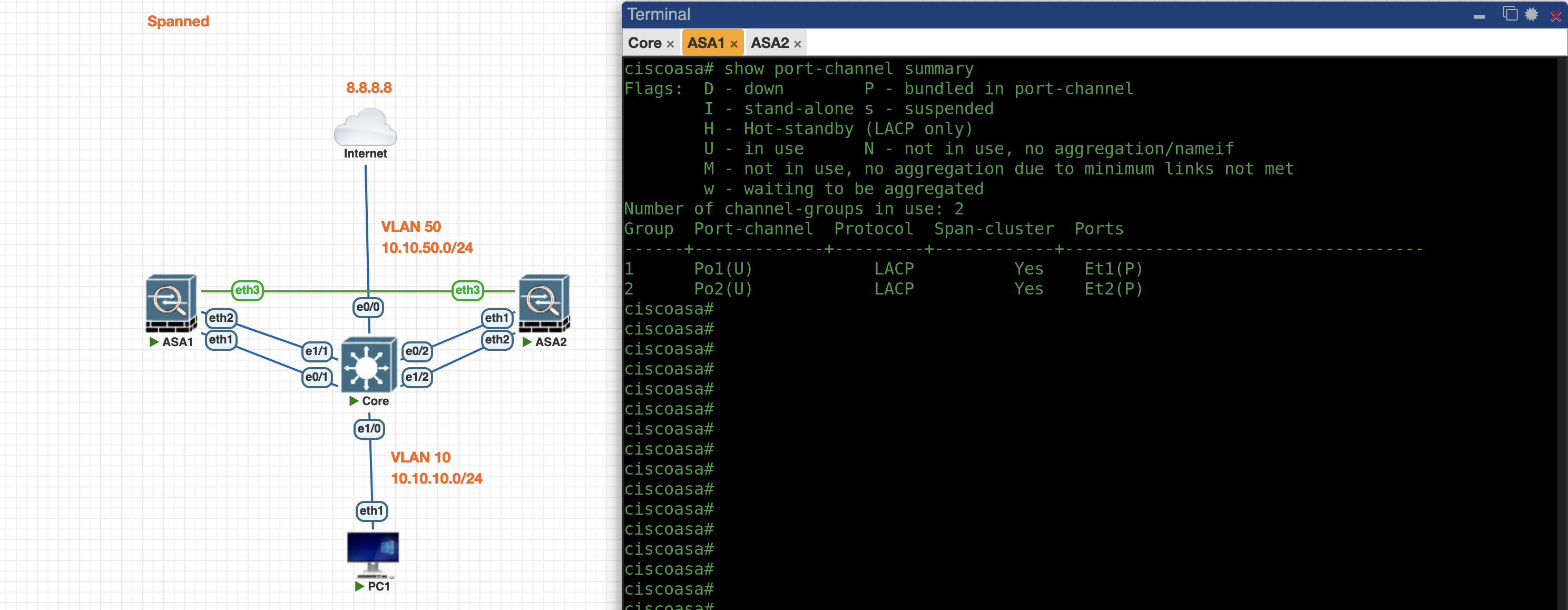 Now the Port-Channel between Core and ASA is up