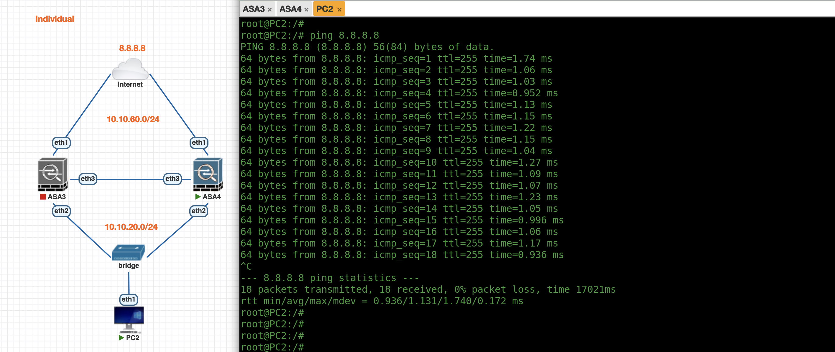 On the PC side, we can now ping the ASA as well as to access the internet