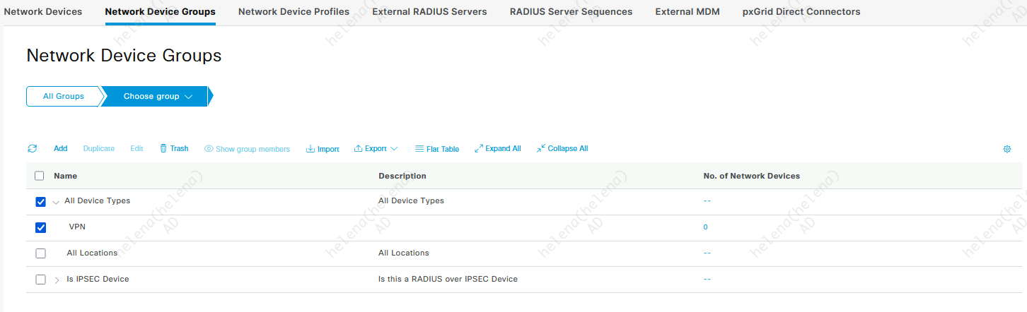 To offload the authentication to ISE, first we’re gonna configure a Network Device Groups named VPN