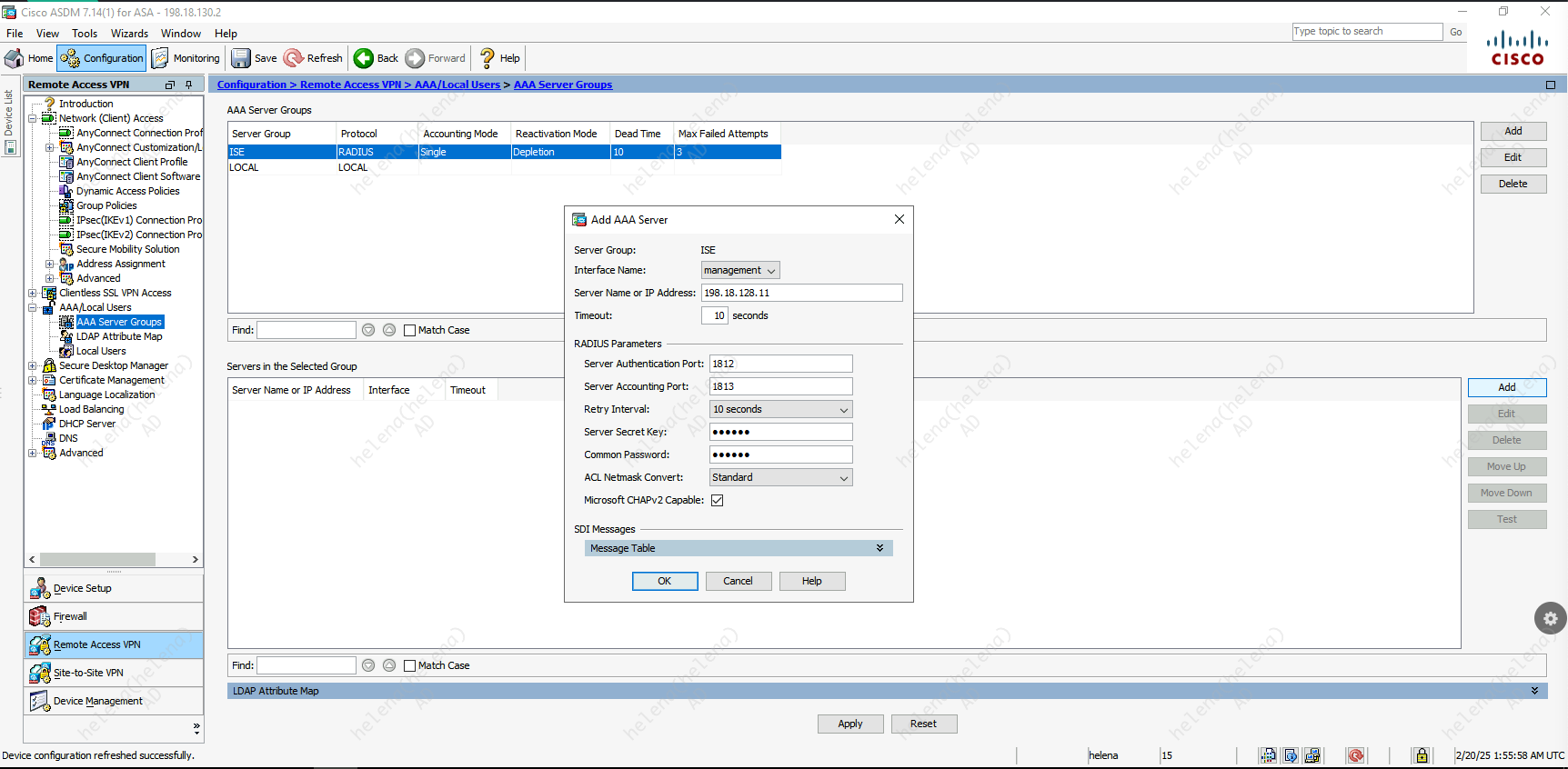 Then add the ASA as a Network Device that’s part of the VPN Device Group