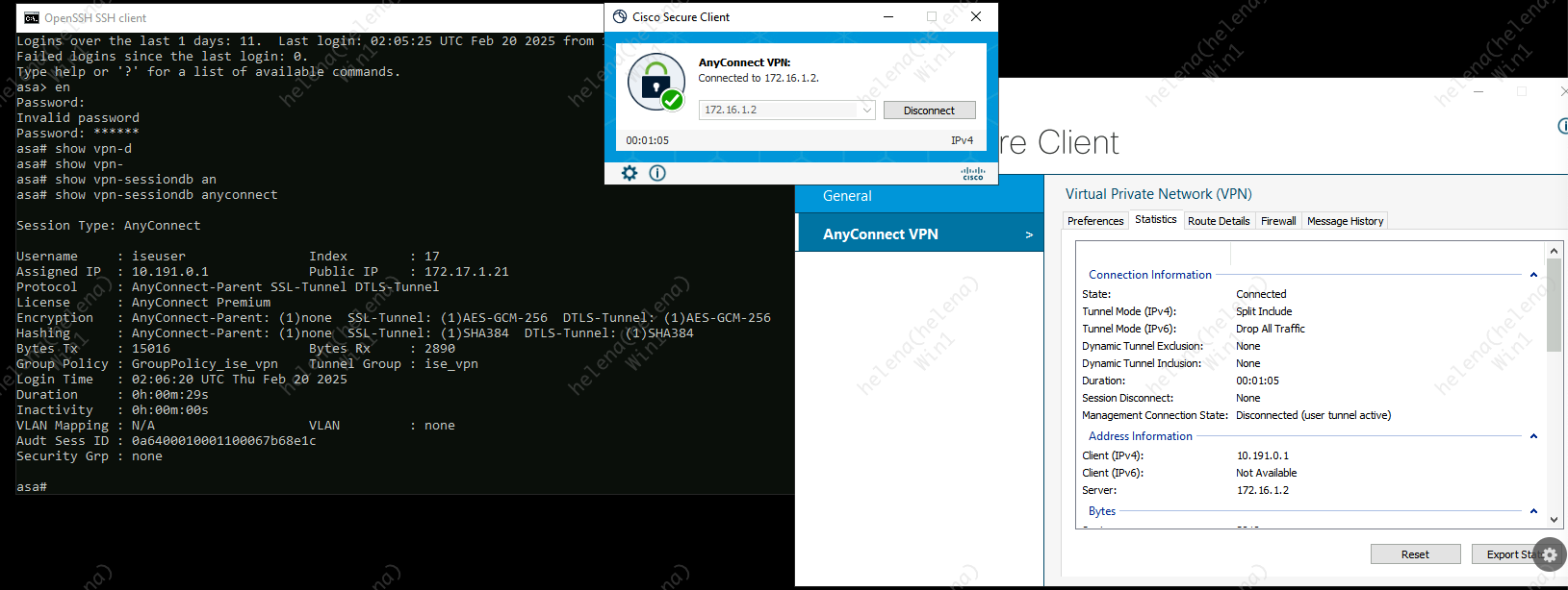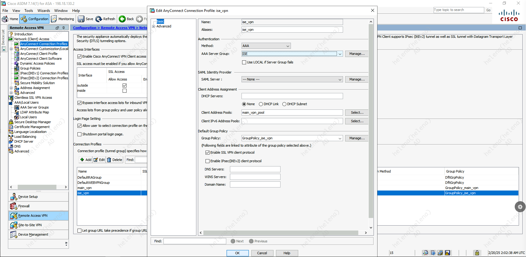 That should do it, now lets try connecting to VPN using ISE user to the ise_vpn connection profile / group