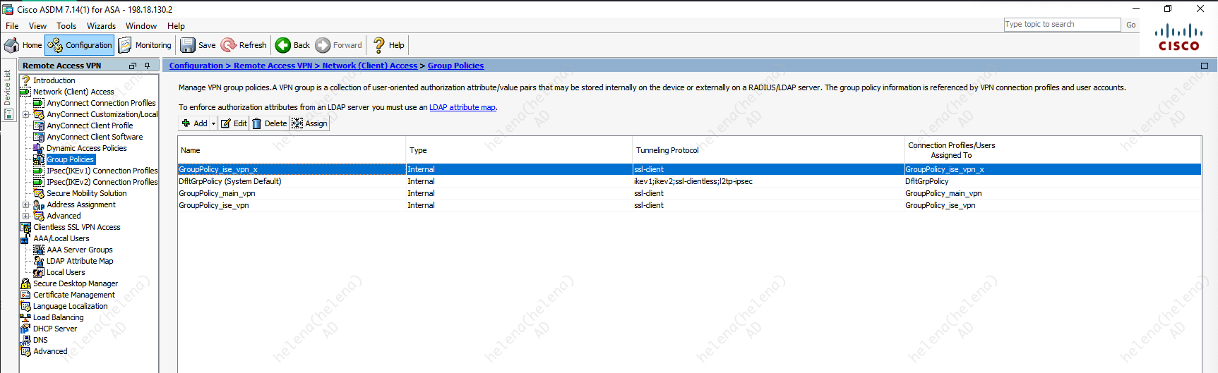 Other than giving dynamic ACL, we can also dynamically assign Group Policy for each connecting user. First let’s create a new Group Policy name ise_vpn_x thats not by default used by any Tunnel Group