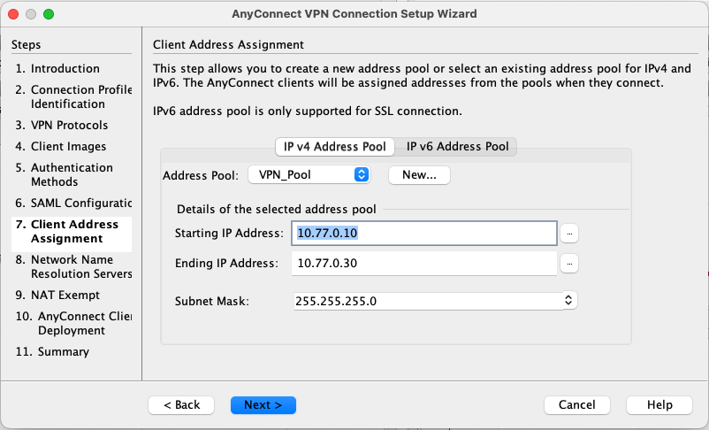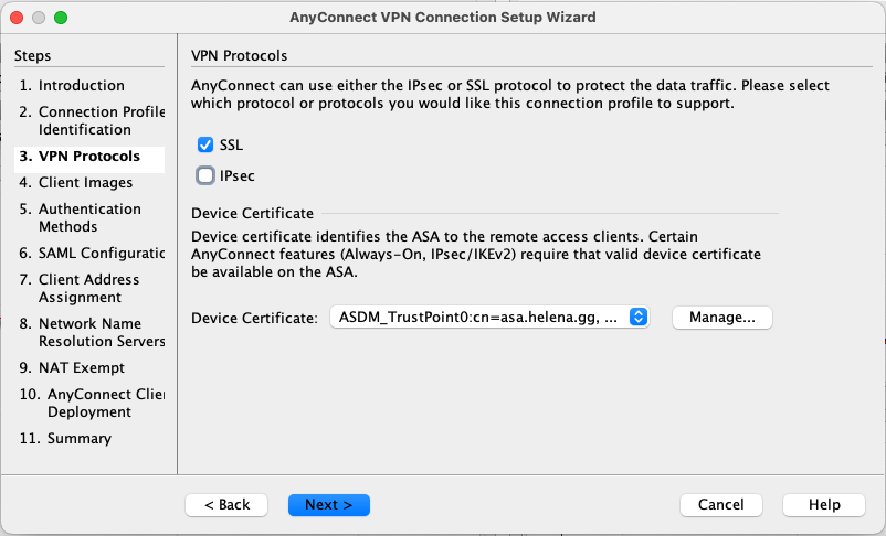 Now we configure the VPN configuration, go to Wizards » VPN Wizards » Anyconnect VPN Wizard