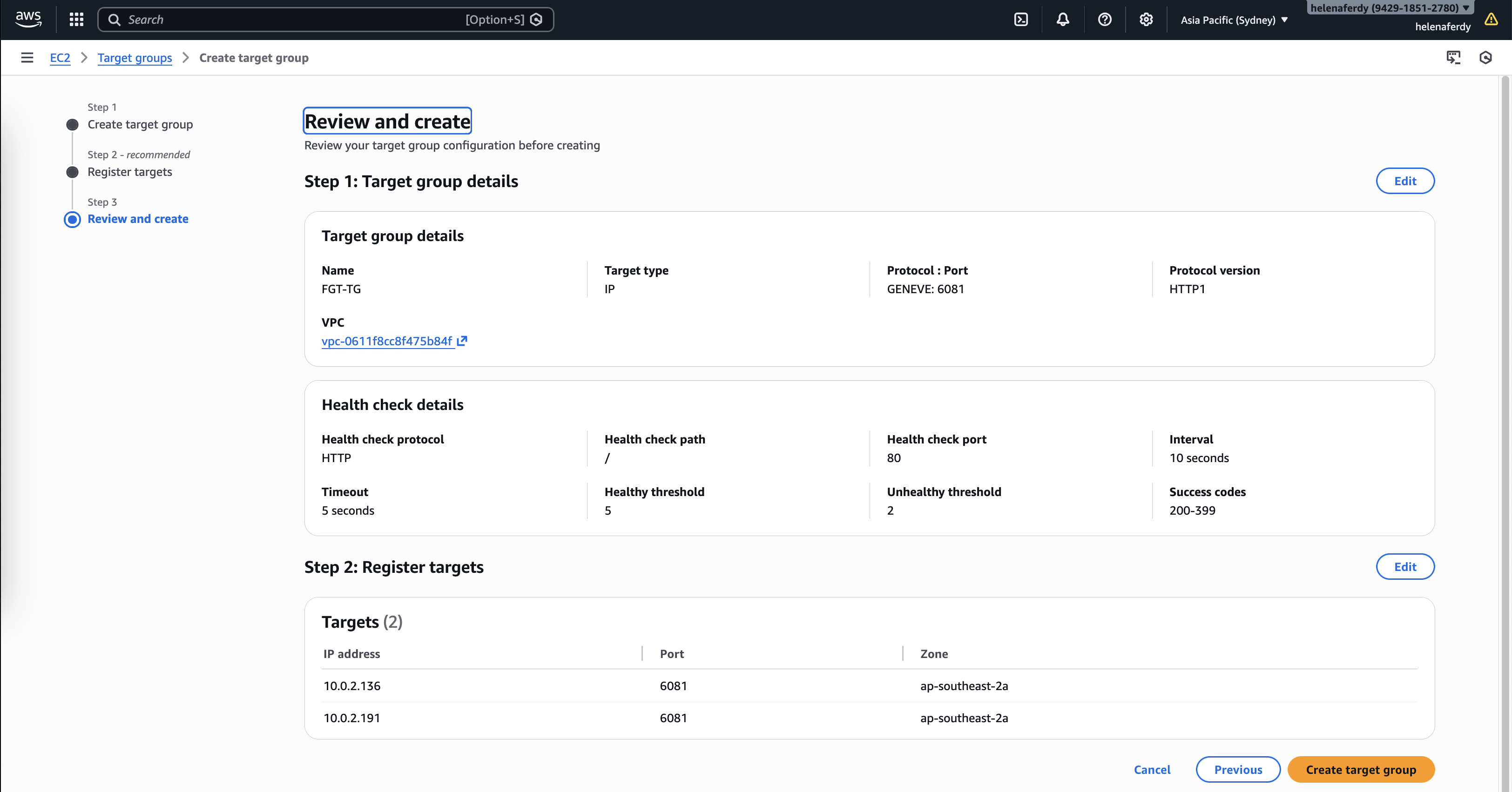 For health check we will use a simple HTTP check so Target Group knows whether FGT is up or not
