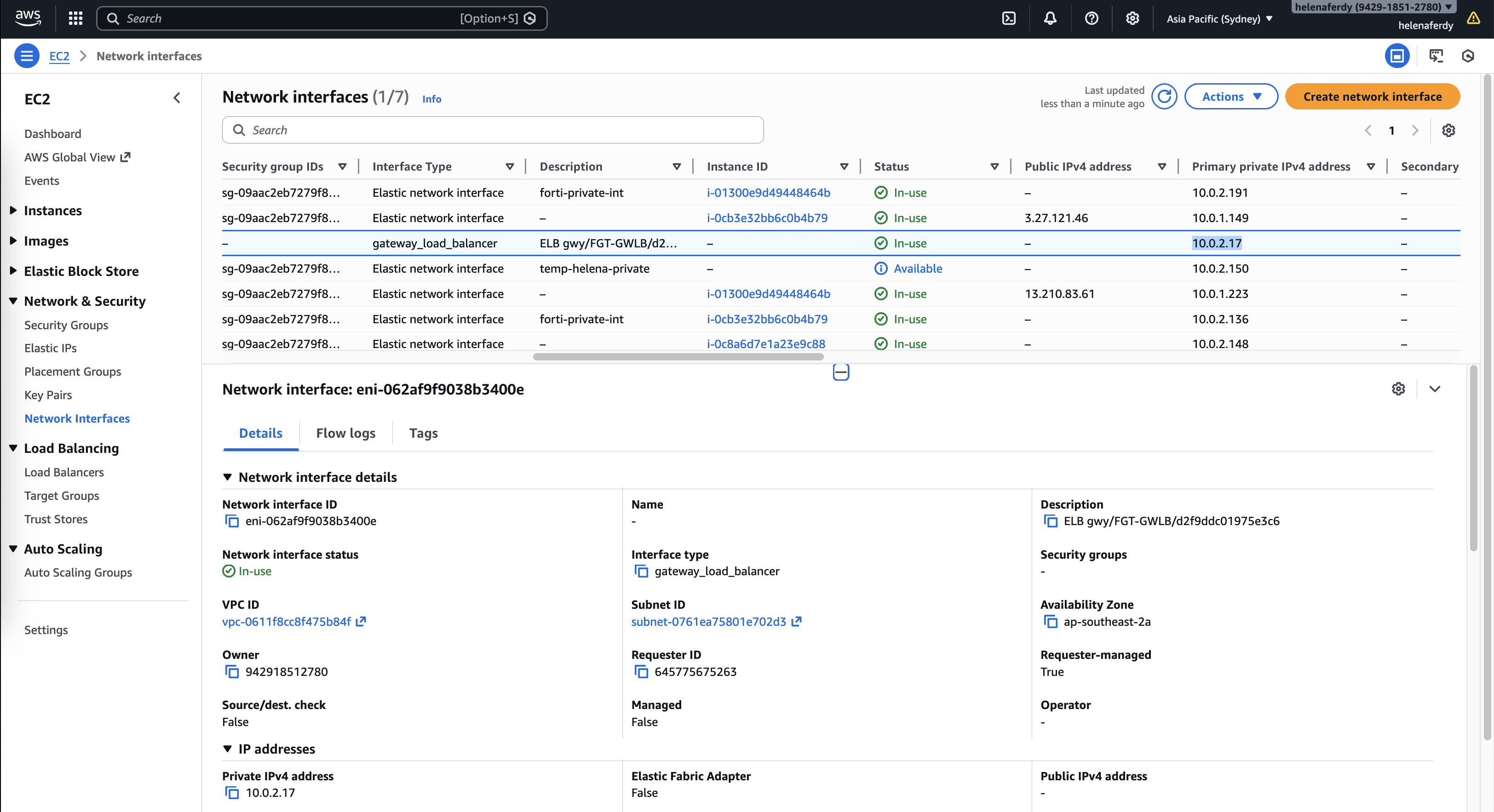 We need to take note for the GWLB’s IP Address for later configuration inside the Fortigate