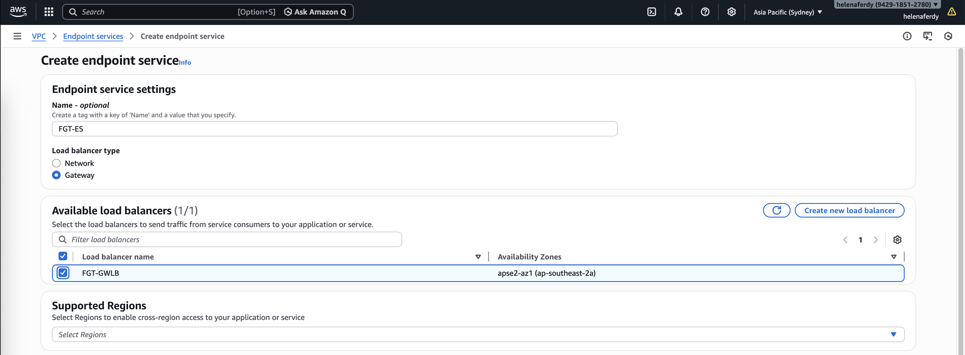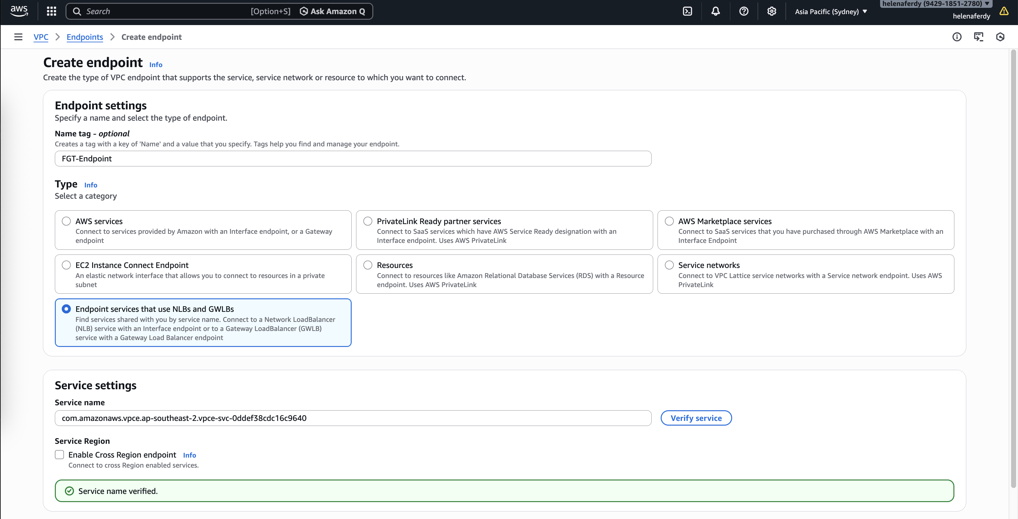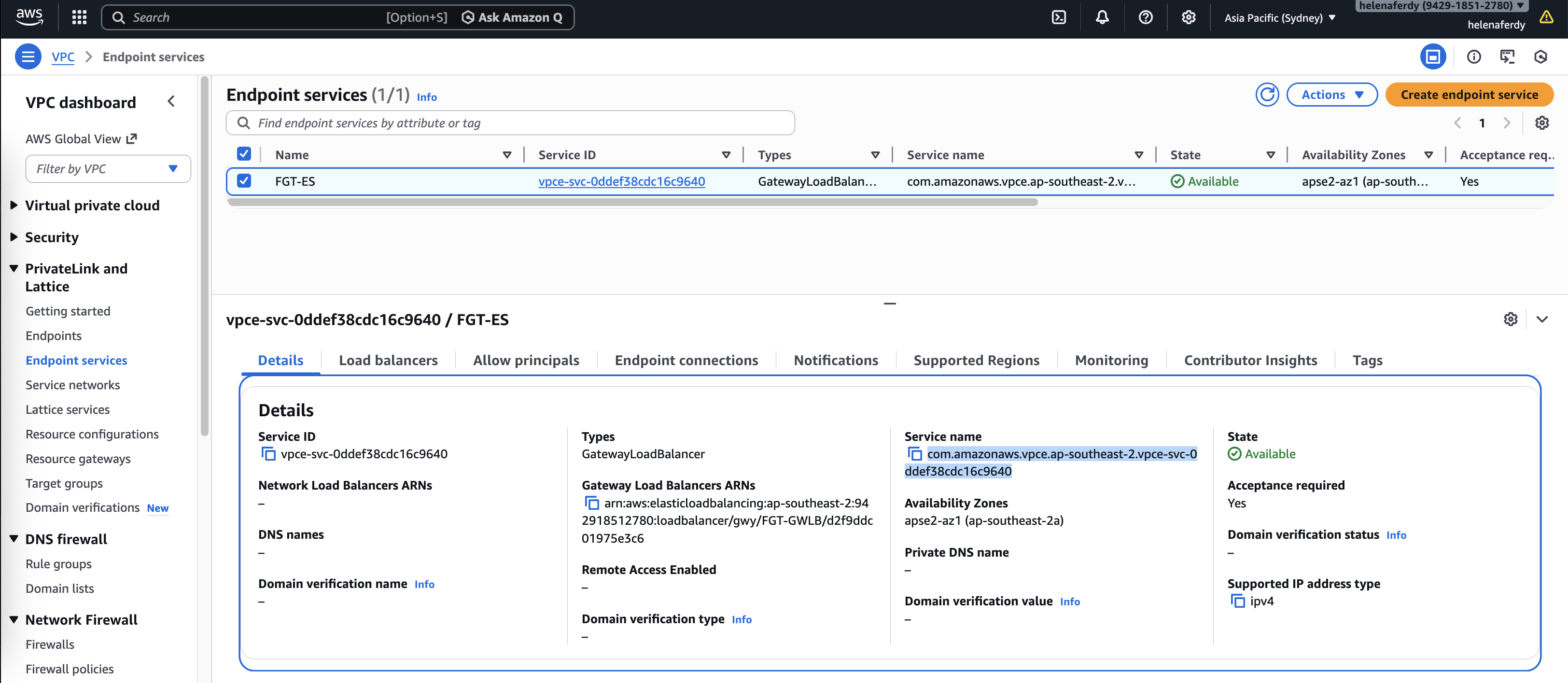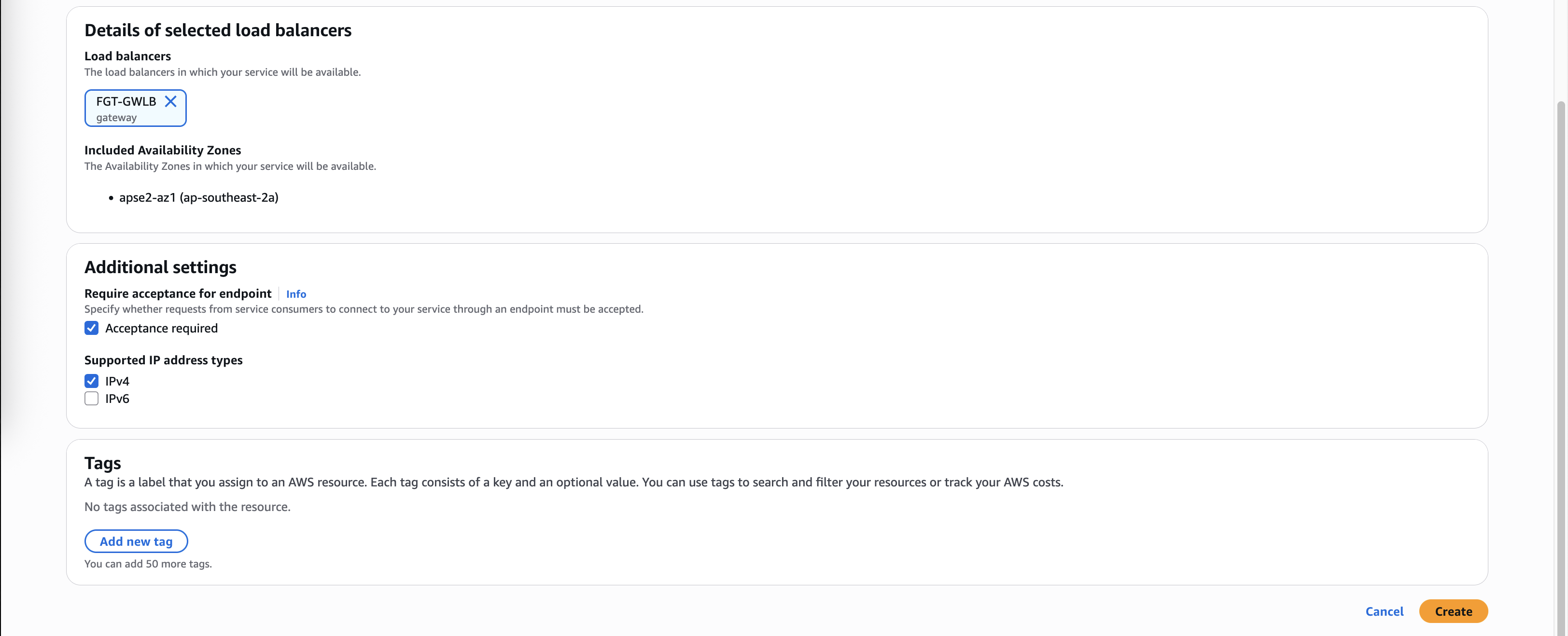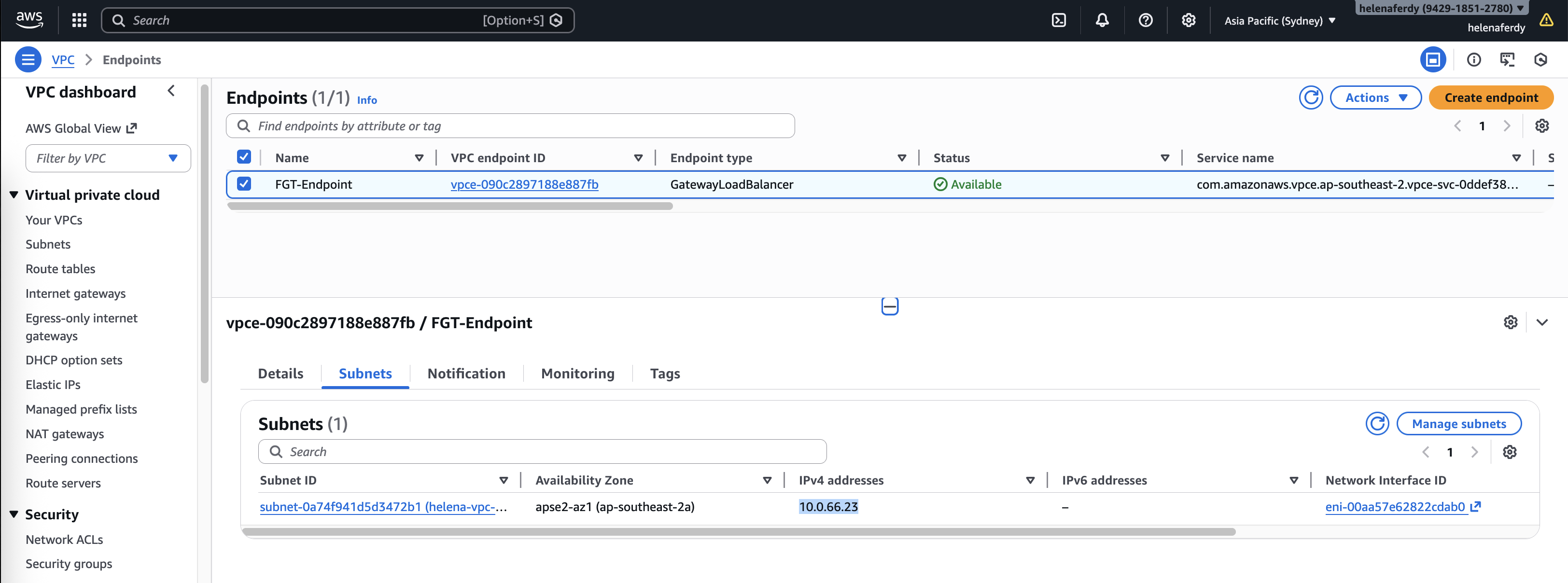 Now we have the GWLB Endpoint configured, take note of the generated IP Address for later configuration inside the Fortigate