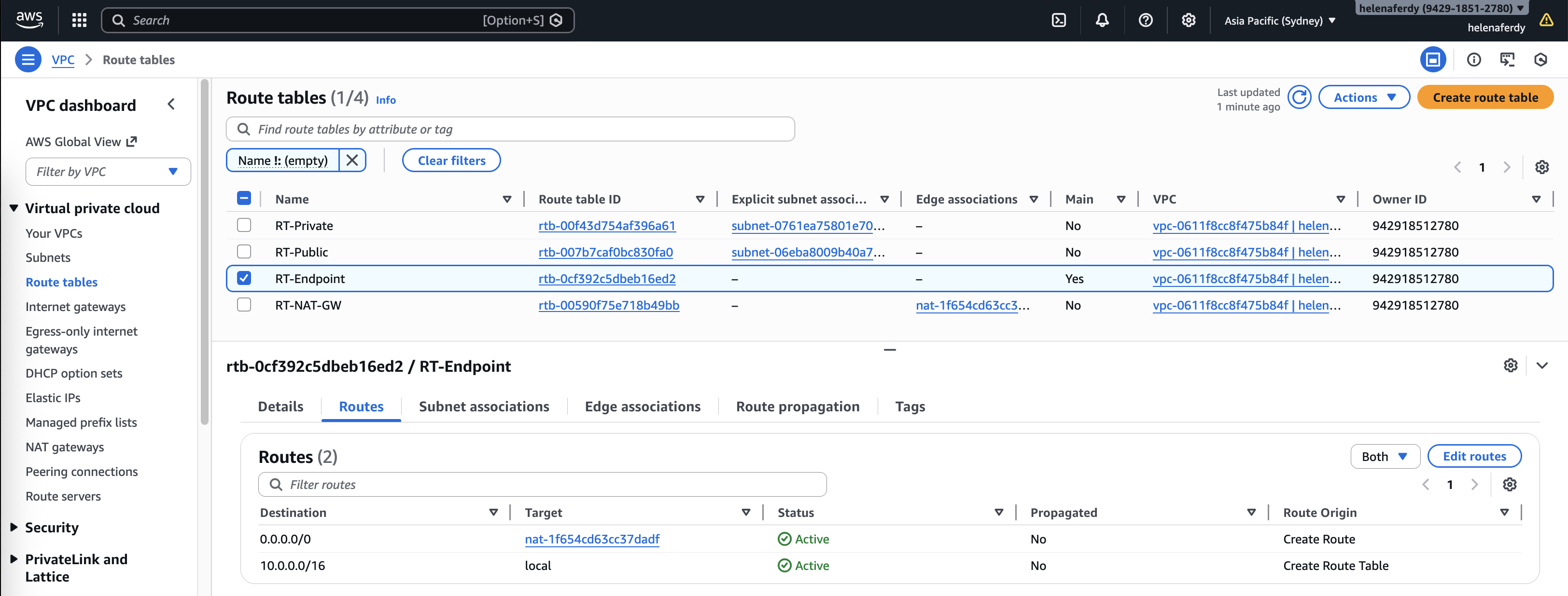 On Endpoint subnet we will send all internet-bound traffic to our NAT Gateway