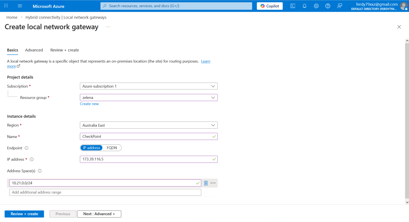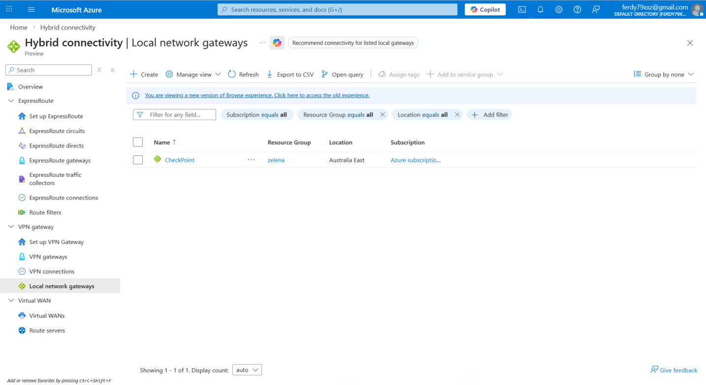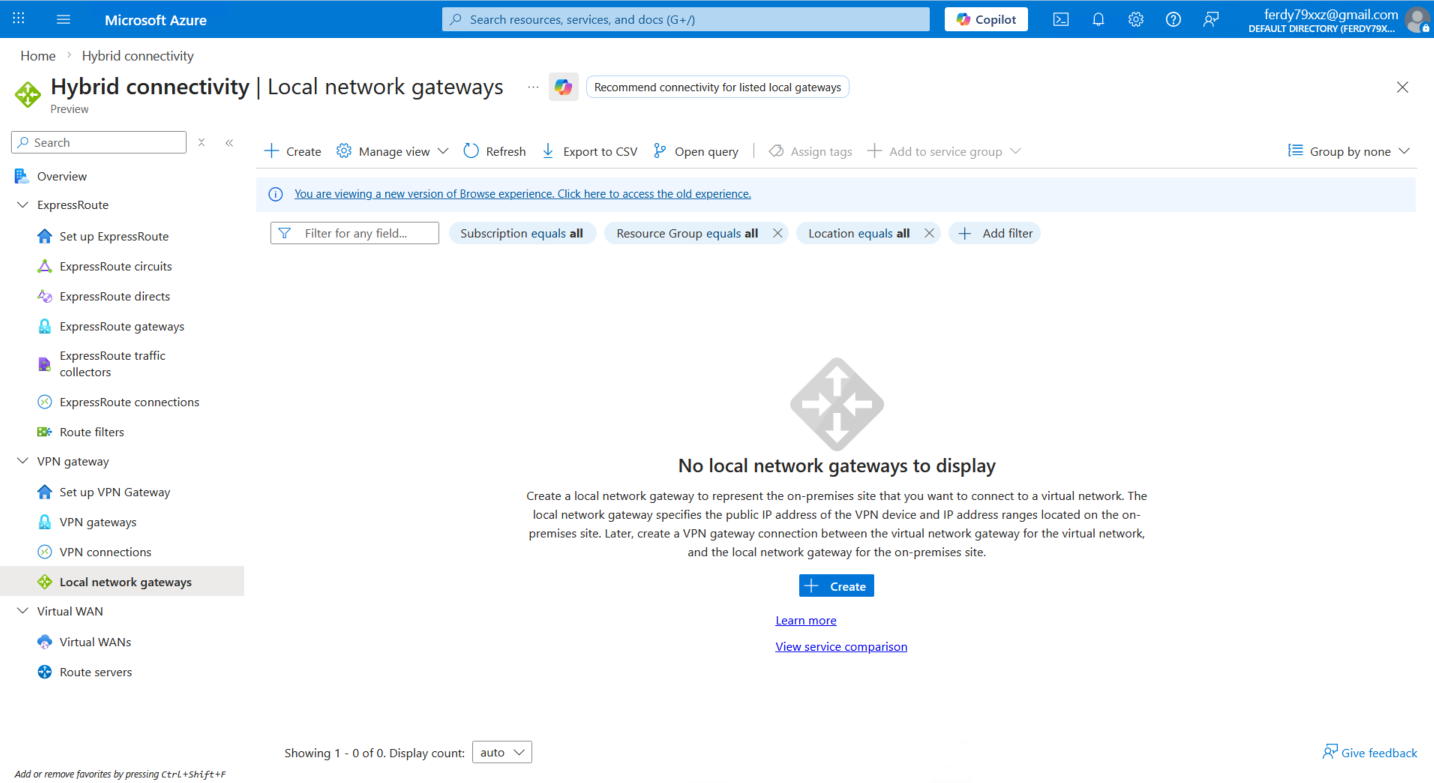 Local Network Gateway (LNG) is a specific object that represents our on-premises VPN peer within the Azure environment. Here we create new one