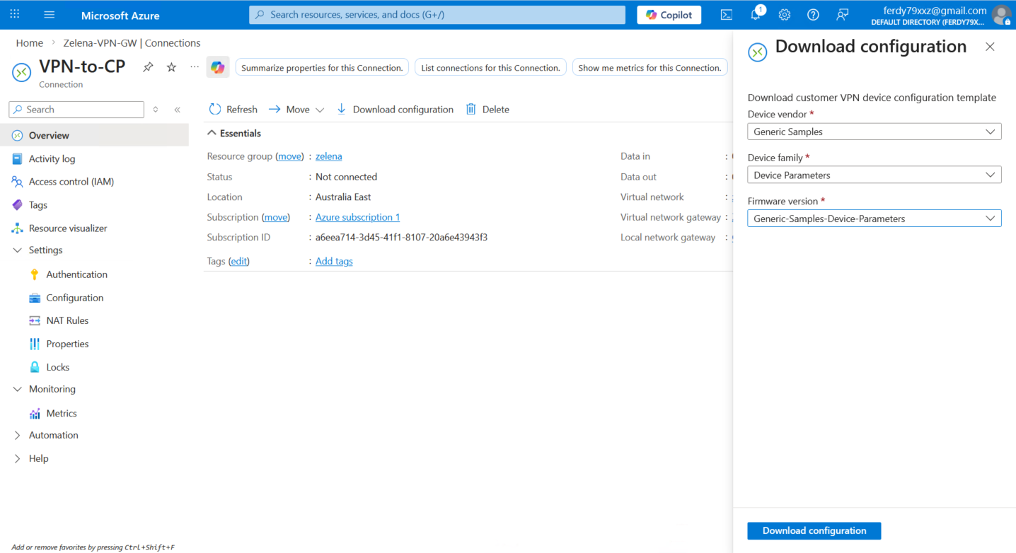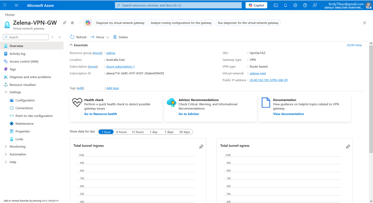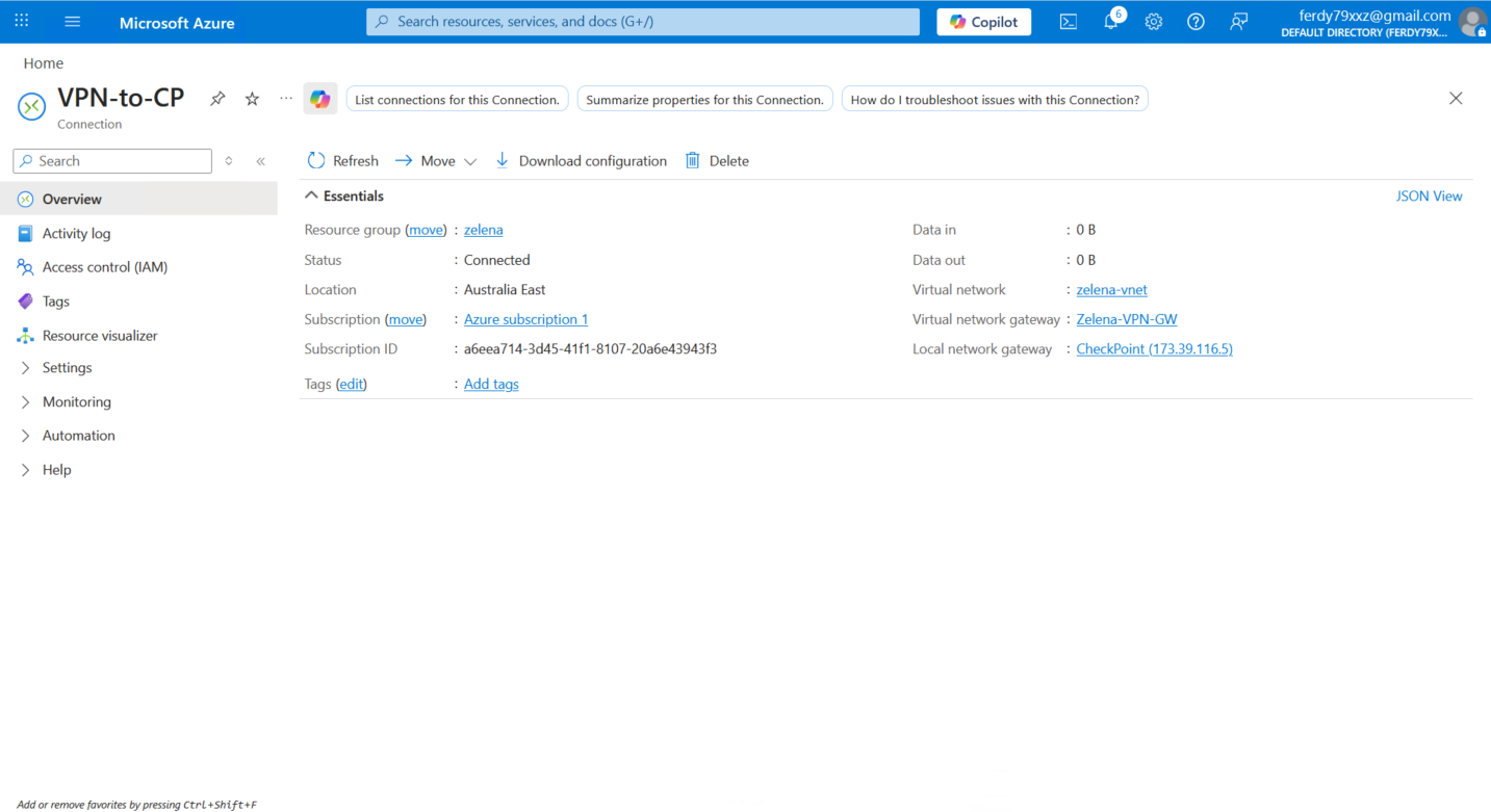 Back on Azure’s connection, now we can see that the VPN is Connected