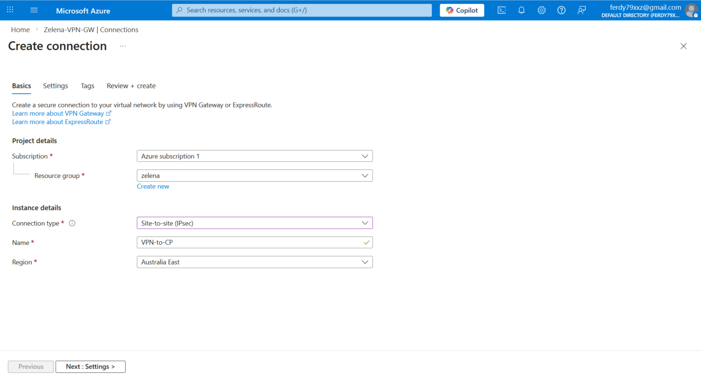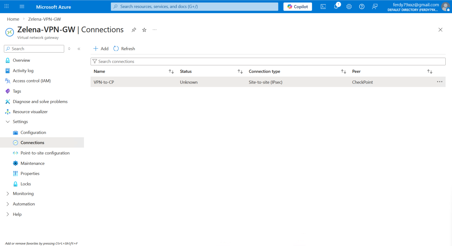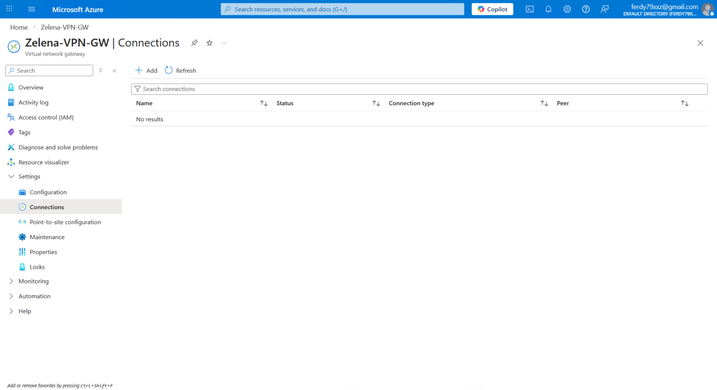 Now we go back to the VPN Gateway and add a new Connection