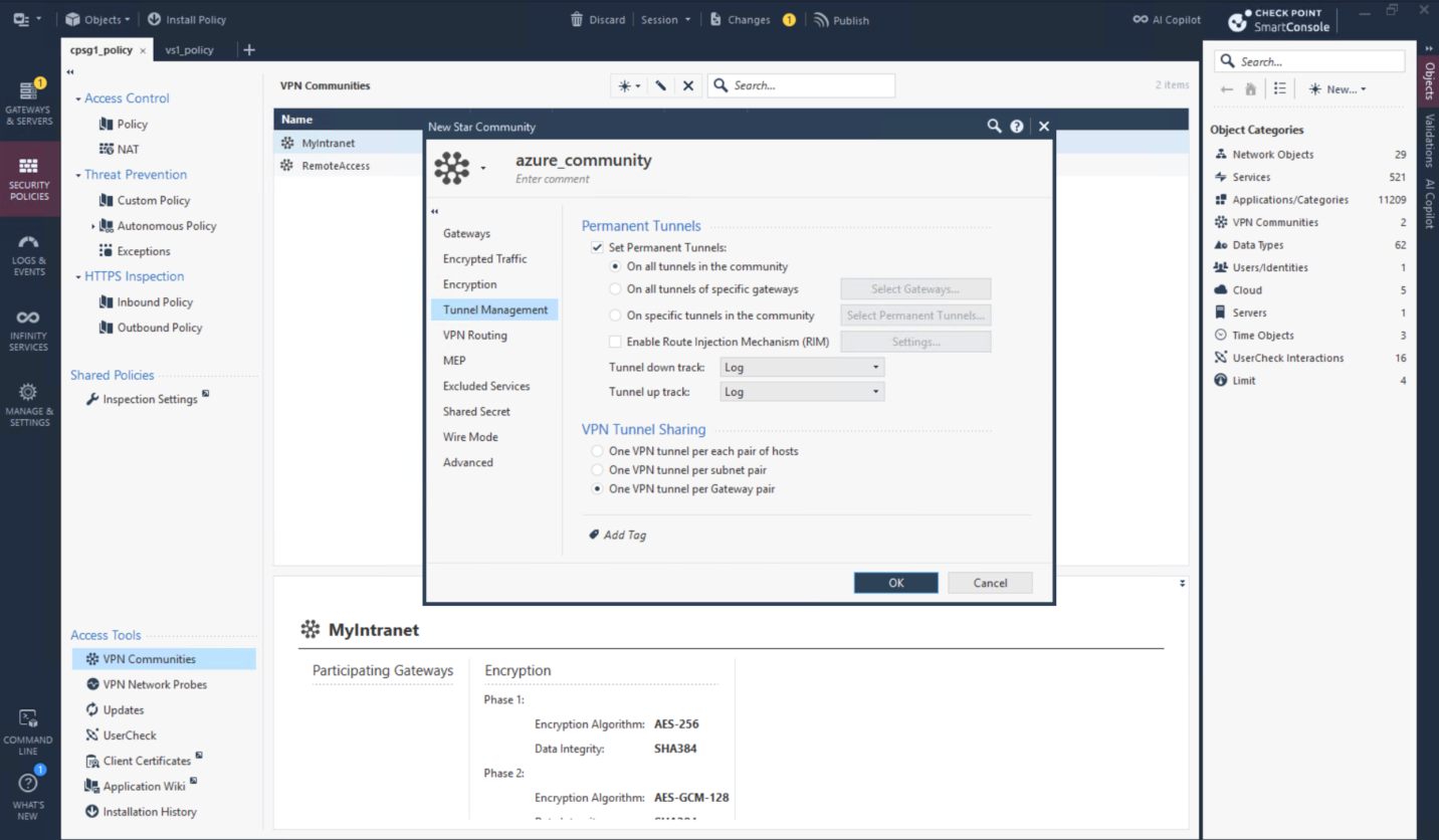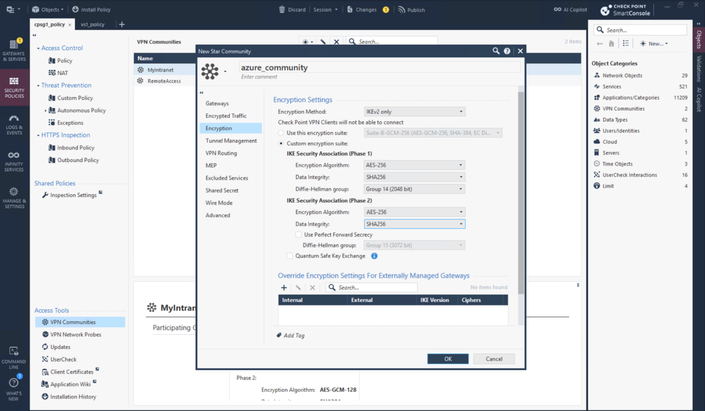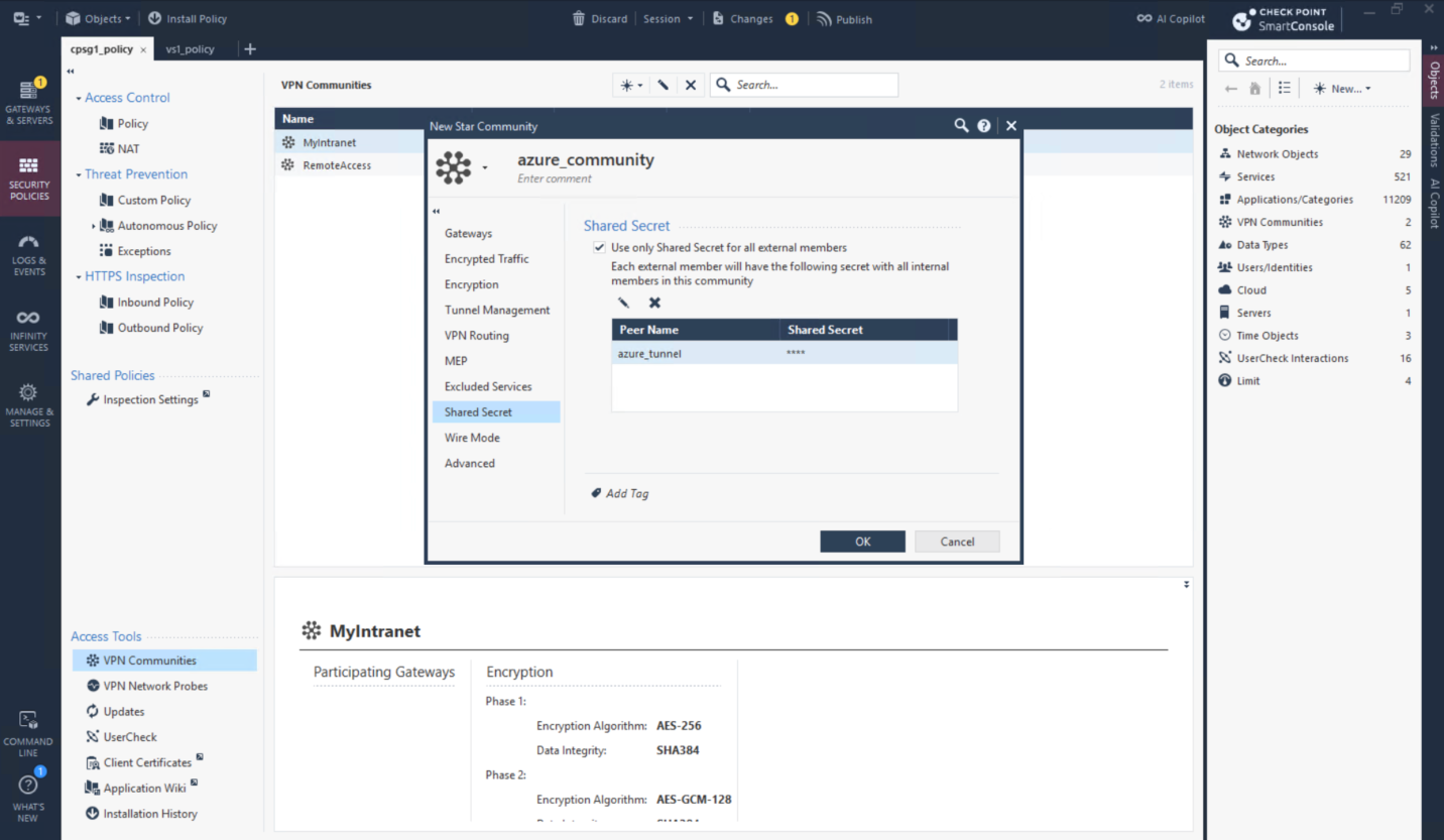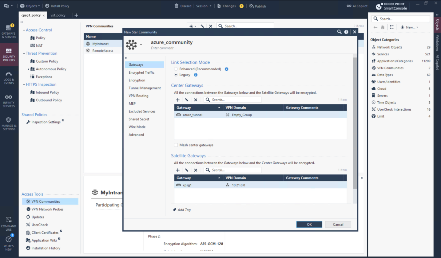 Then create Star VPN Community with parameters retrieved from the downloaded configurations