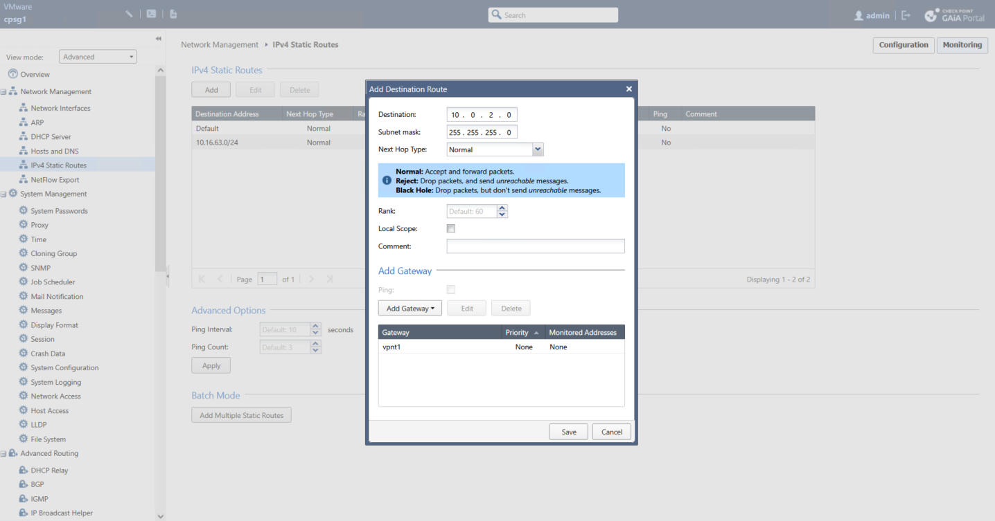We name it CheckPoint and point to CP’s Public IP Address (even though CP is behind NAT and not directly accessible)