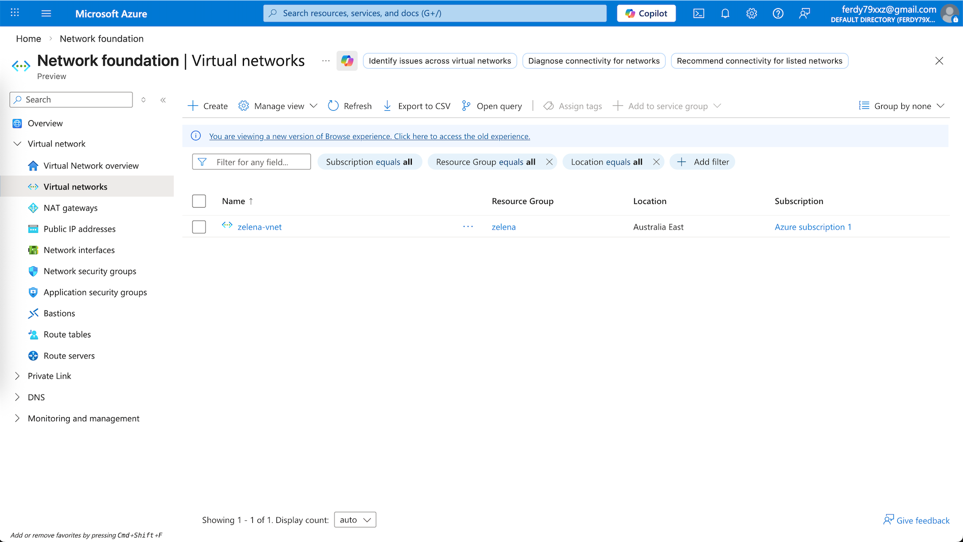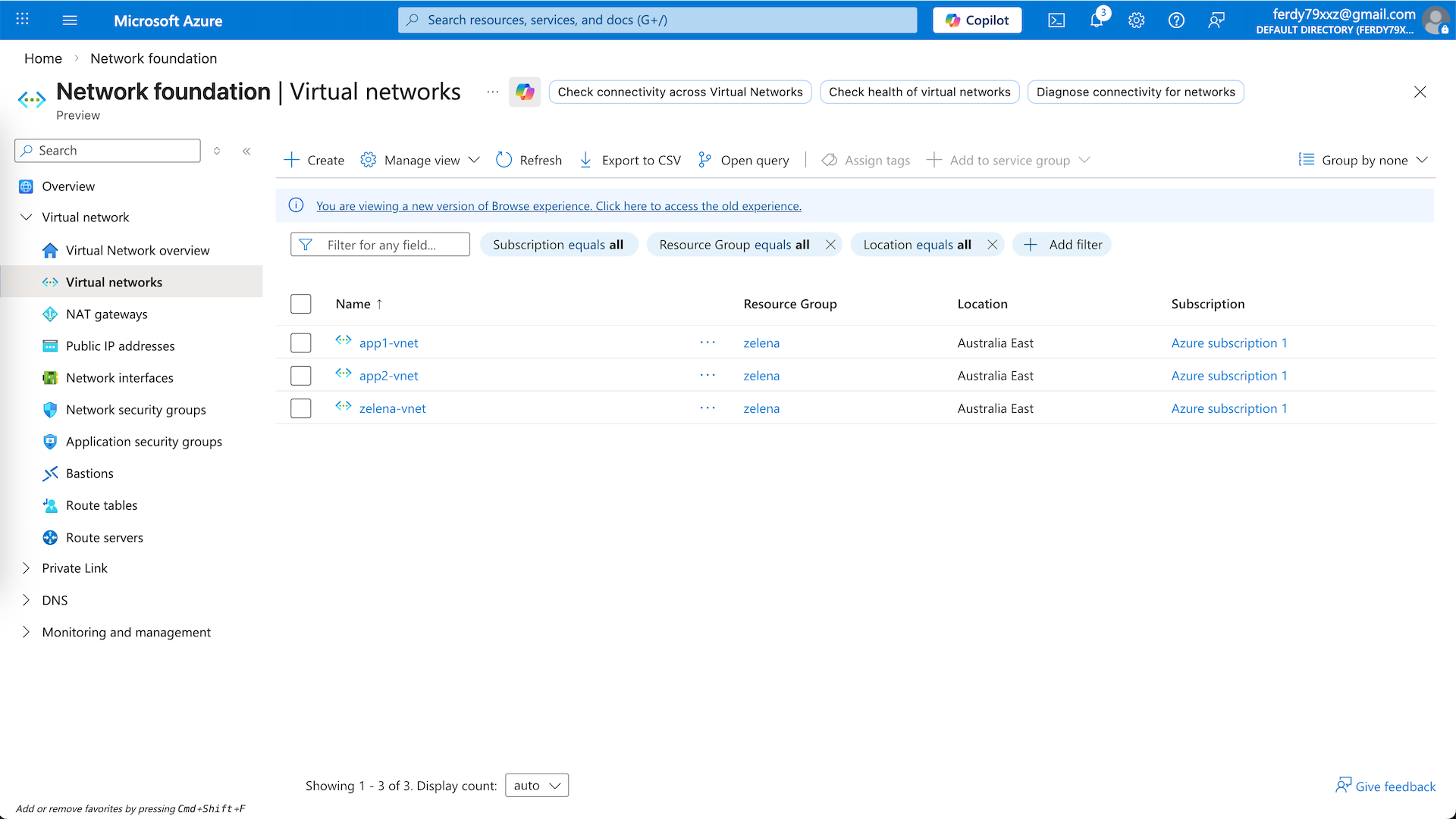 The first one is app1-vnet on 10.10.0.0/24