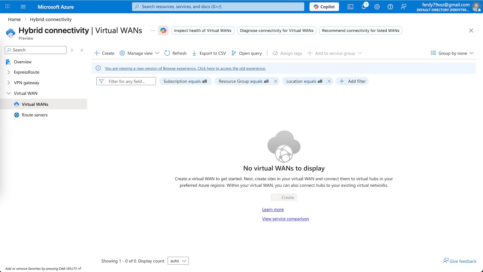 vWAN is a managed networking service that allows us to connect multiple VNets to create a hub-and-spoke architecture. Here we will create a new vWAN