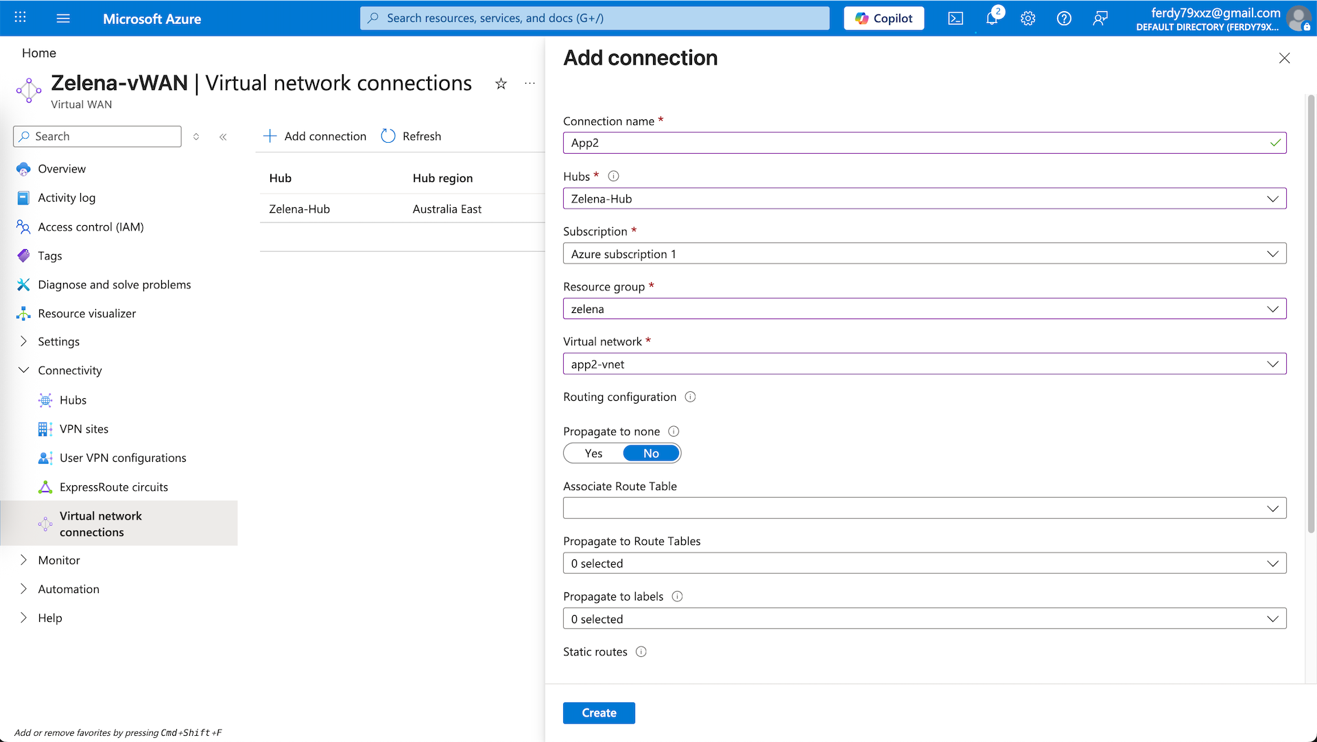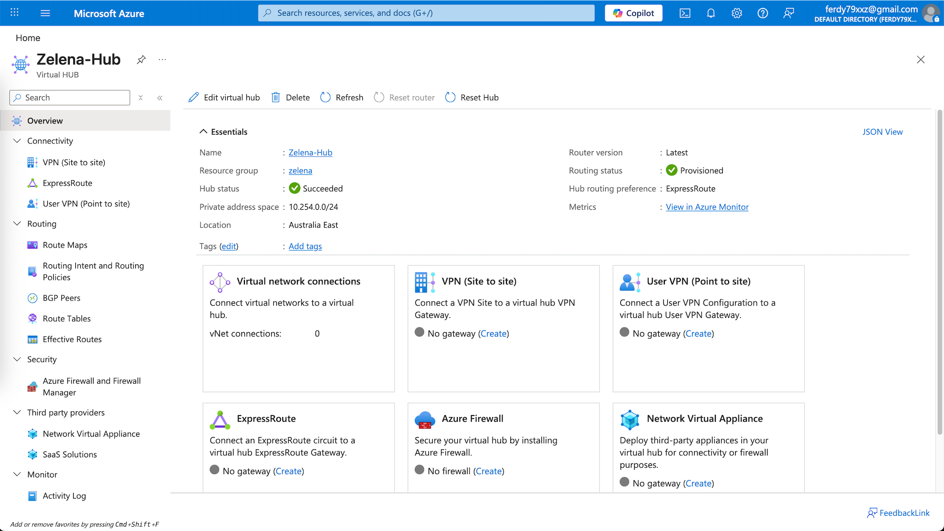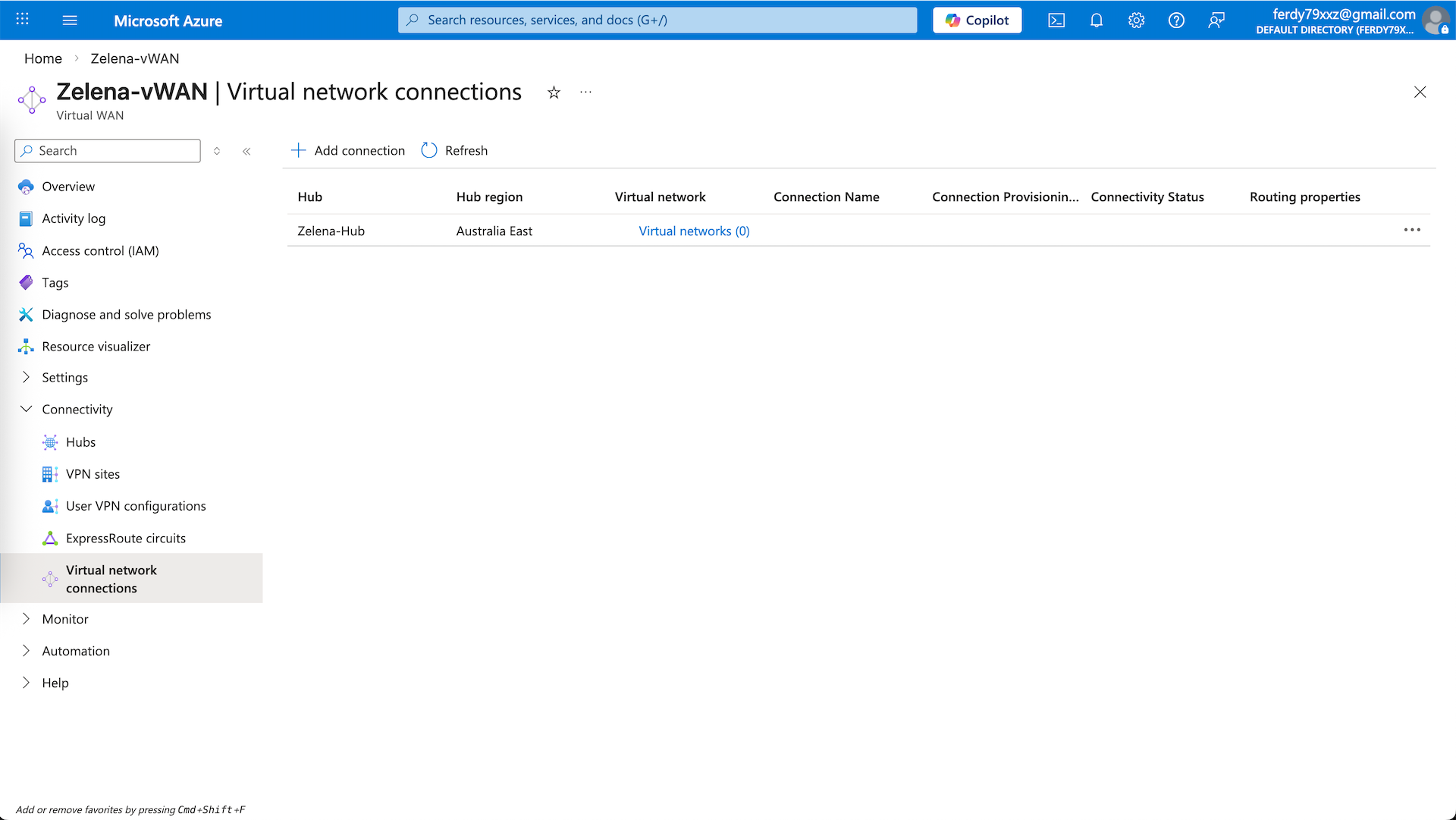 Inside the vHub, there’s Virtual Network Connections. It is the link that attaches a spoke VNets to the hub and enables the VNet to use the hub for transit routing