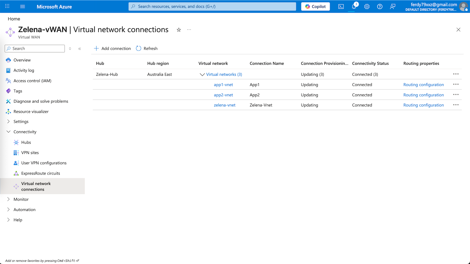 And now we have a vHub that connects to 3 vnets