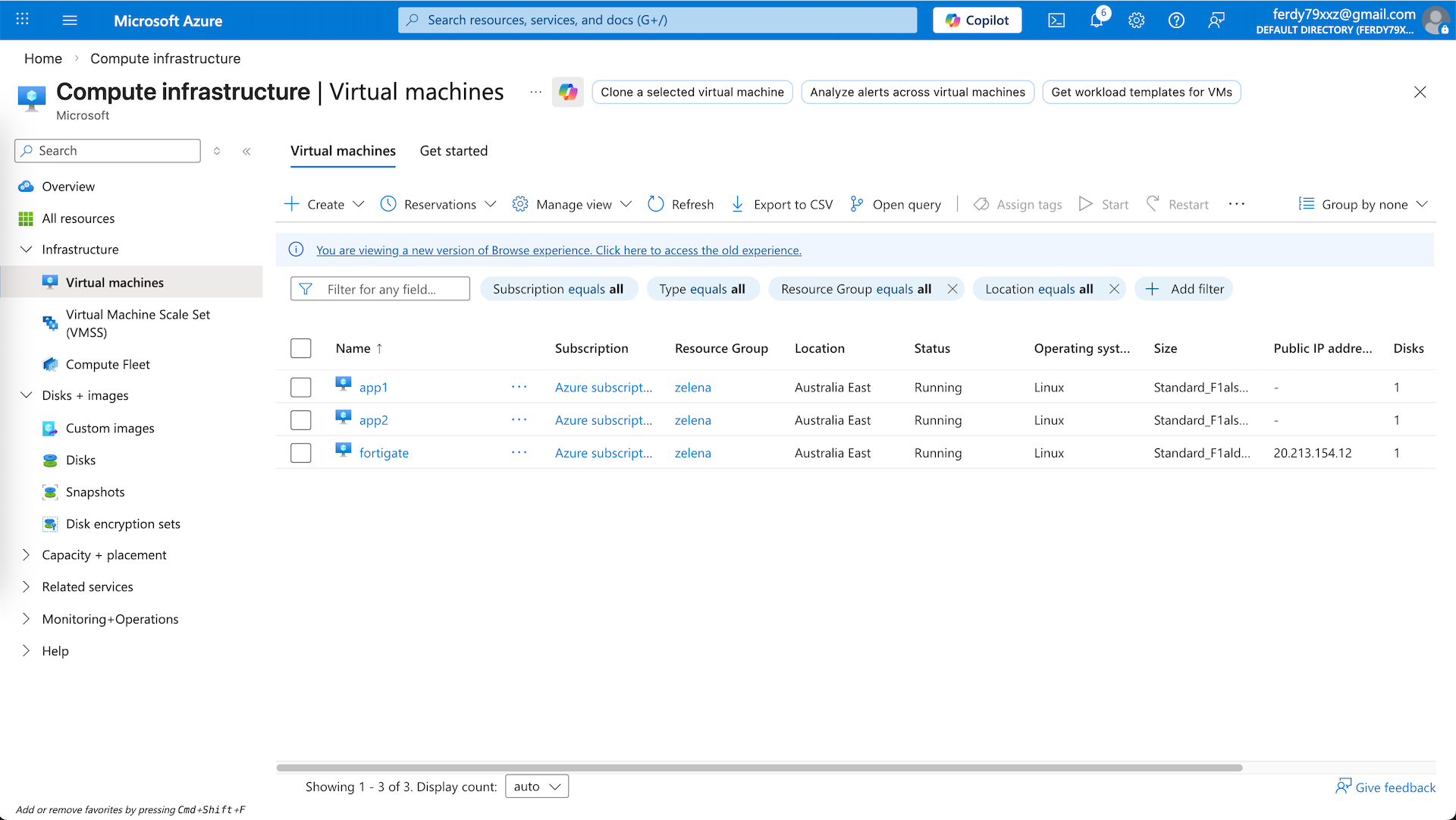 From app1 on 10.10.0.5, we can ping the app2 on 10.20.0.5, proving the inter-spokes connection is working through our hub, and we can also access the internet, verifying that our traffic is steered to the zelena-vnet to use our Fortigate as egress firewall