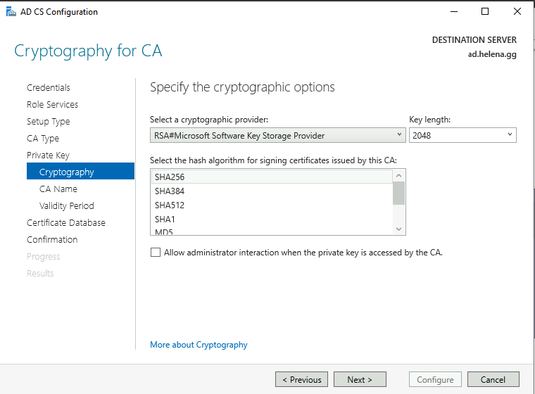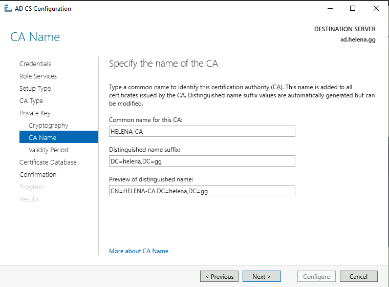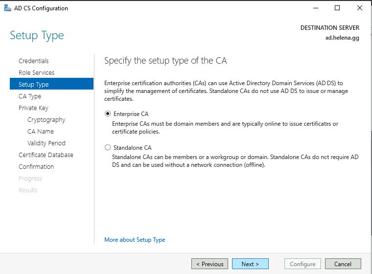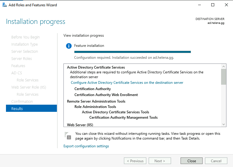 After it finishes, select Configure Active Directory Certificate Services on Desination Server