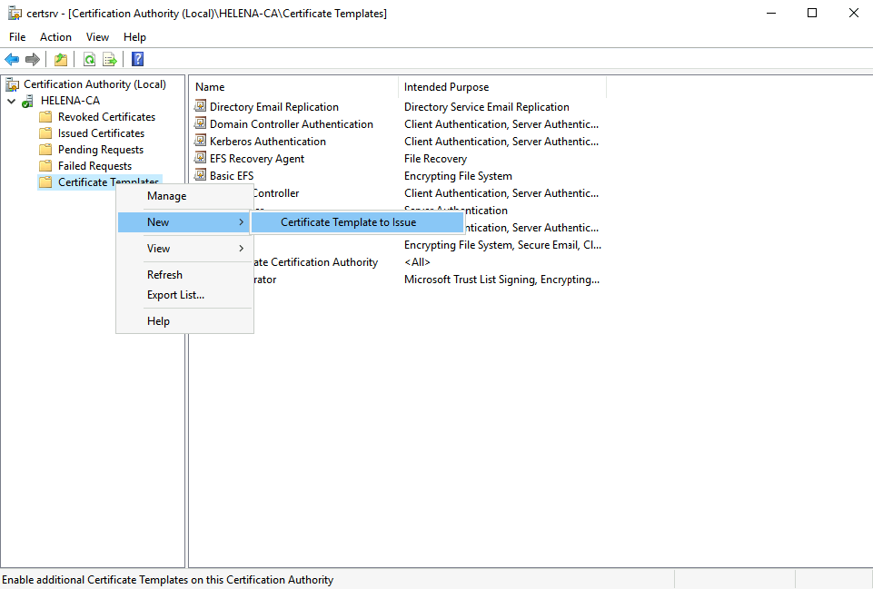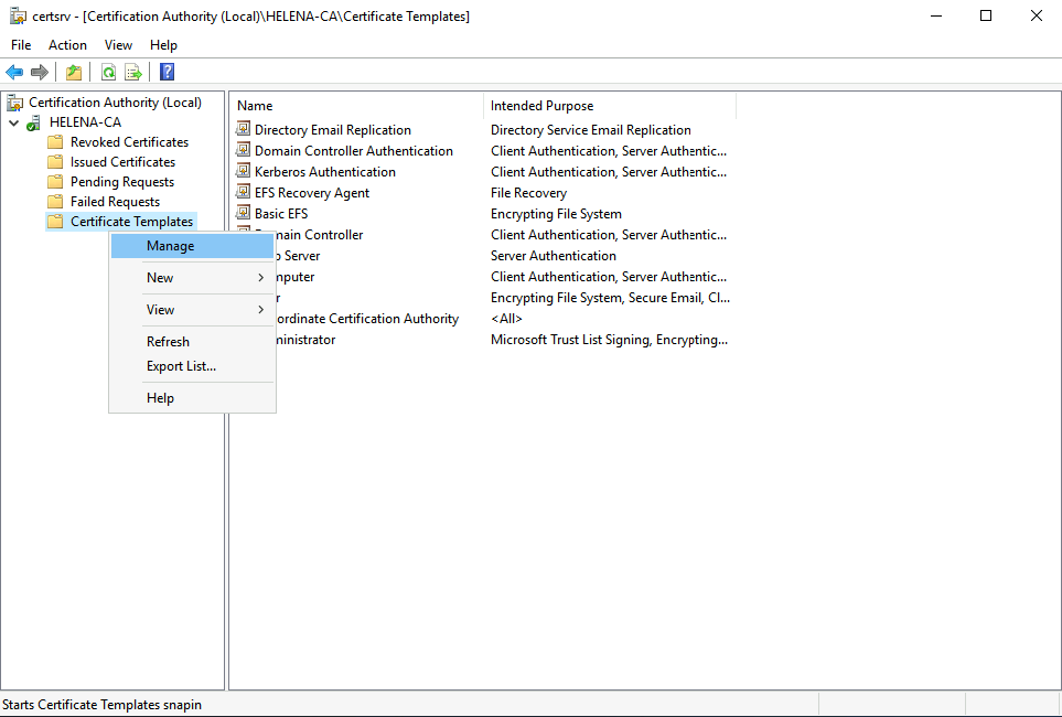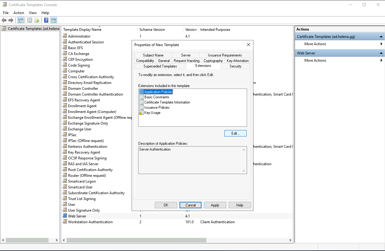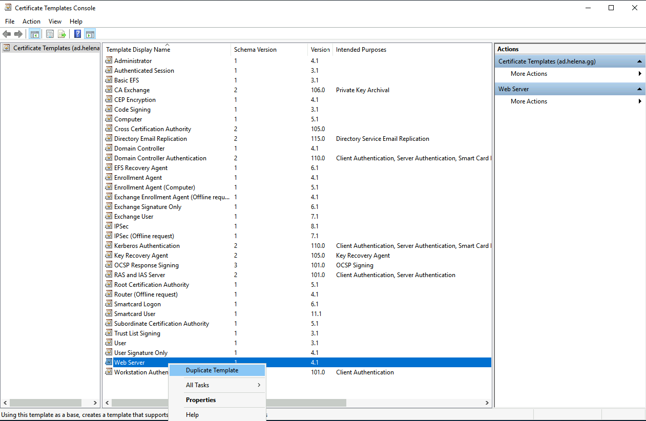 By default, the CA only offers 5 certificate templates, which is enough if all we need is this CA to only sign normal web servers.
