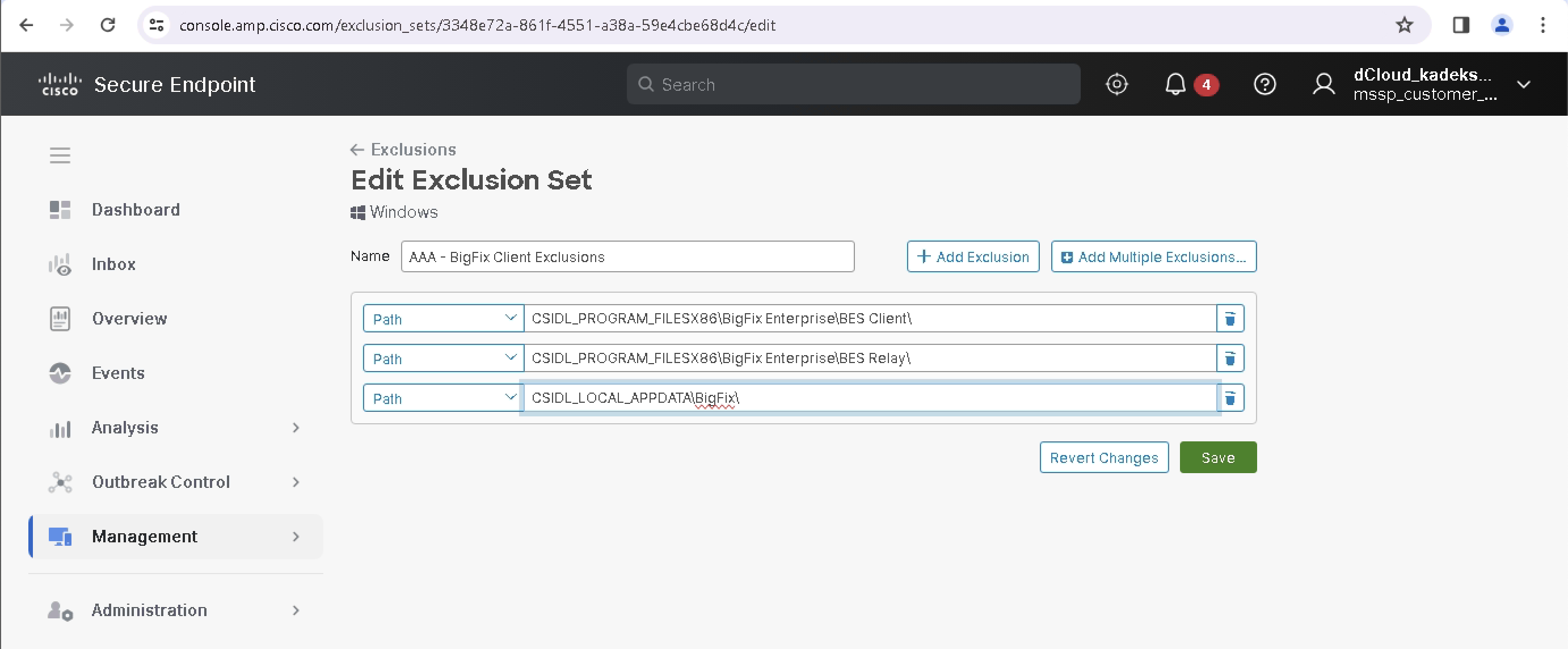 Here the Endpoint Devices happen to use BigFix software so we’d want to exclude its paths