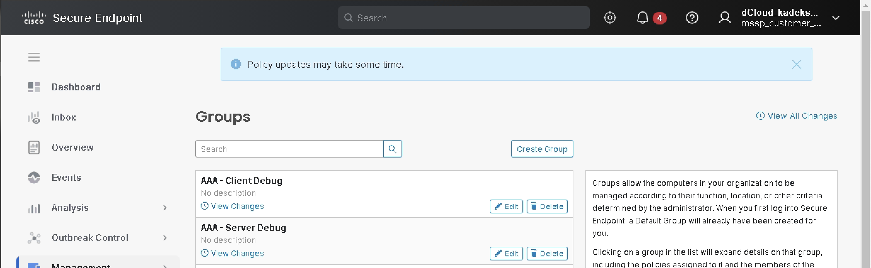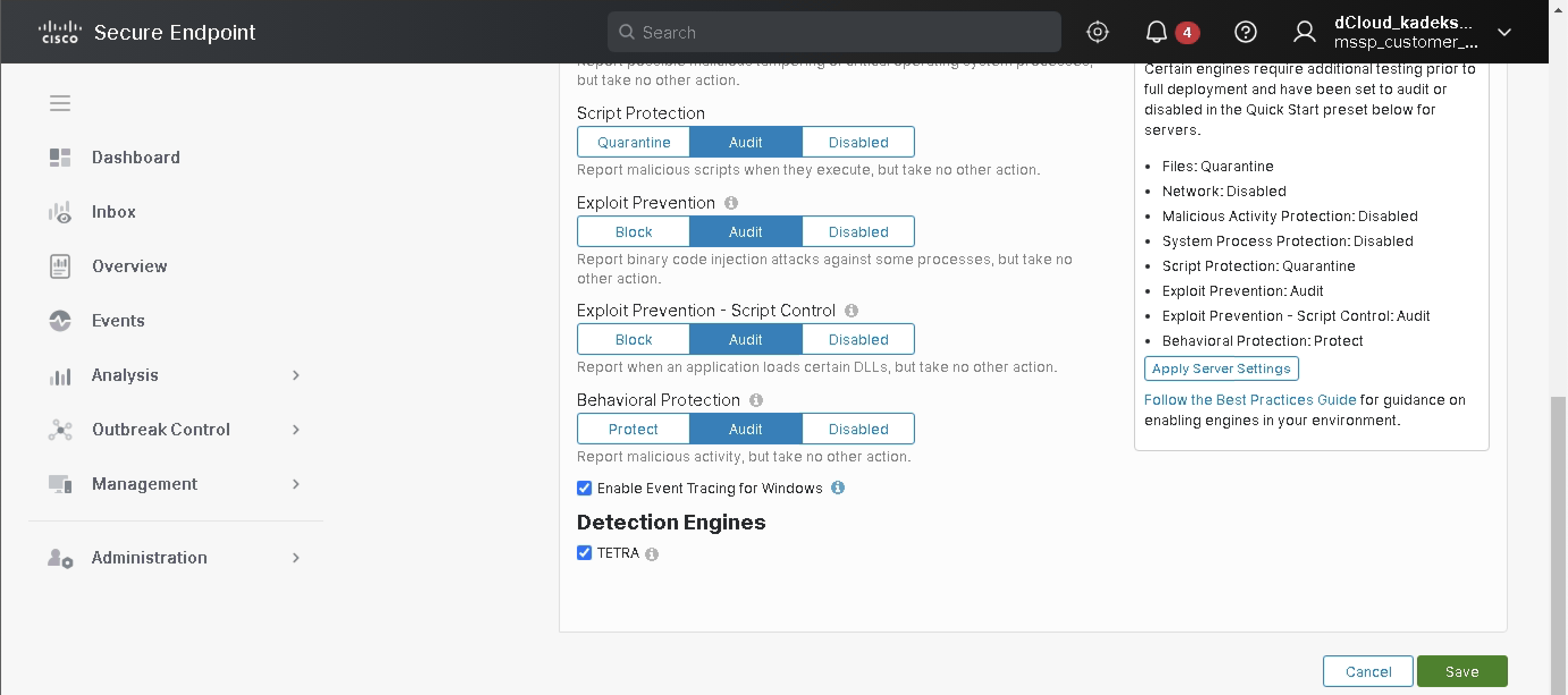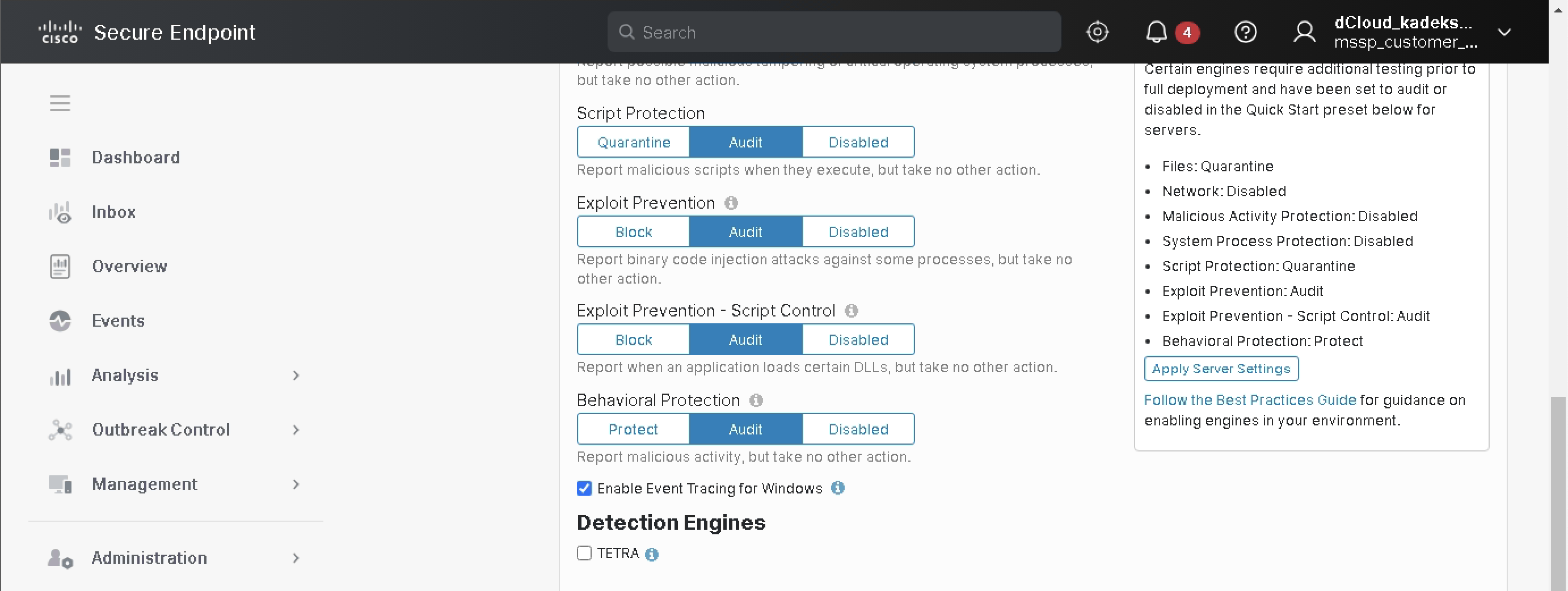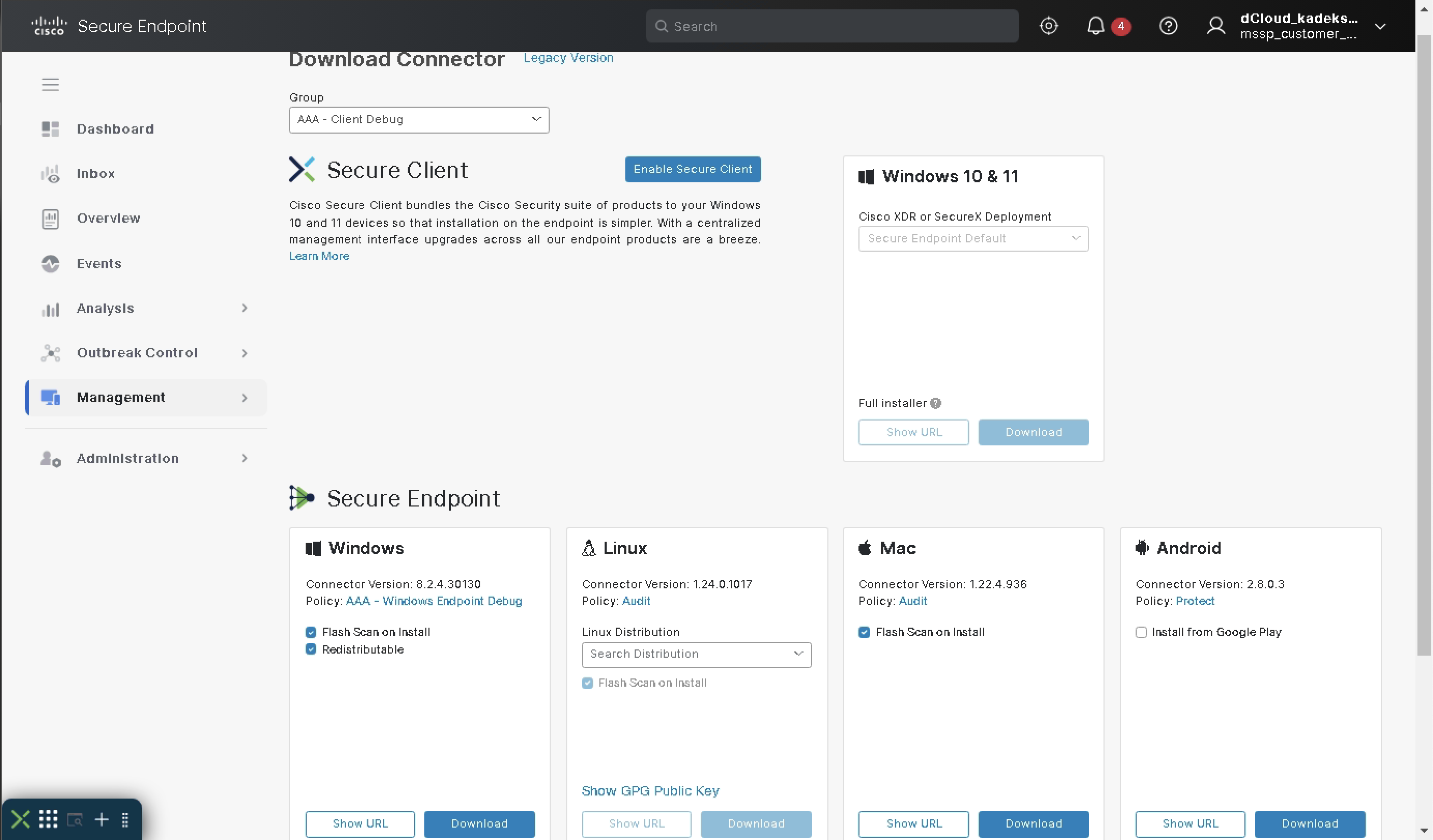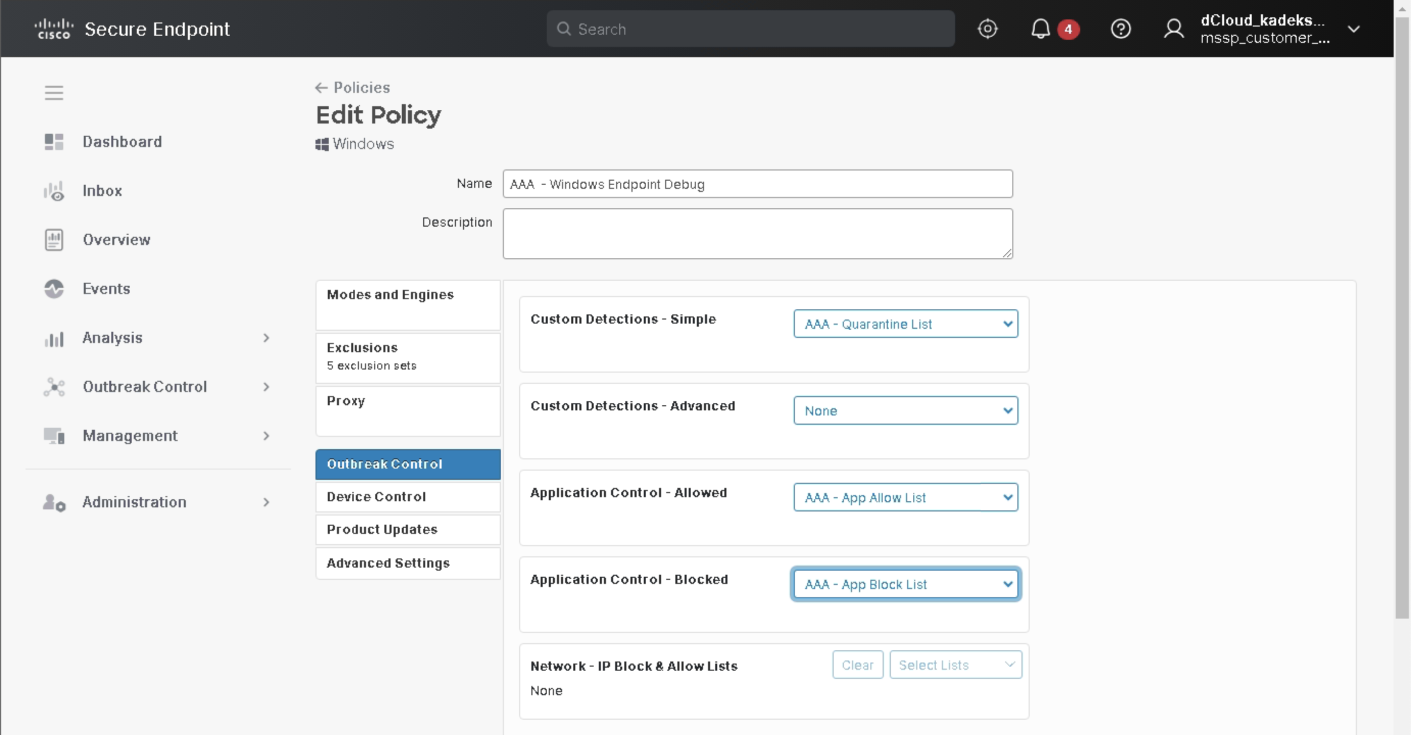 First we’ll create a new policy for Windows Endpoint with the mode set to Debug