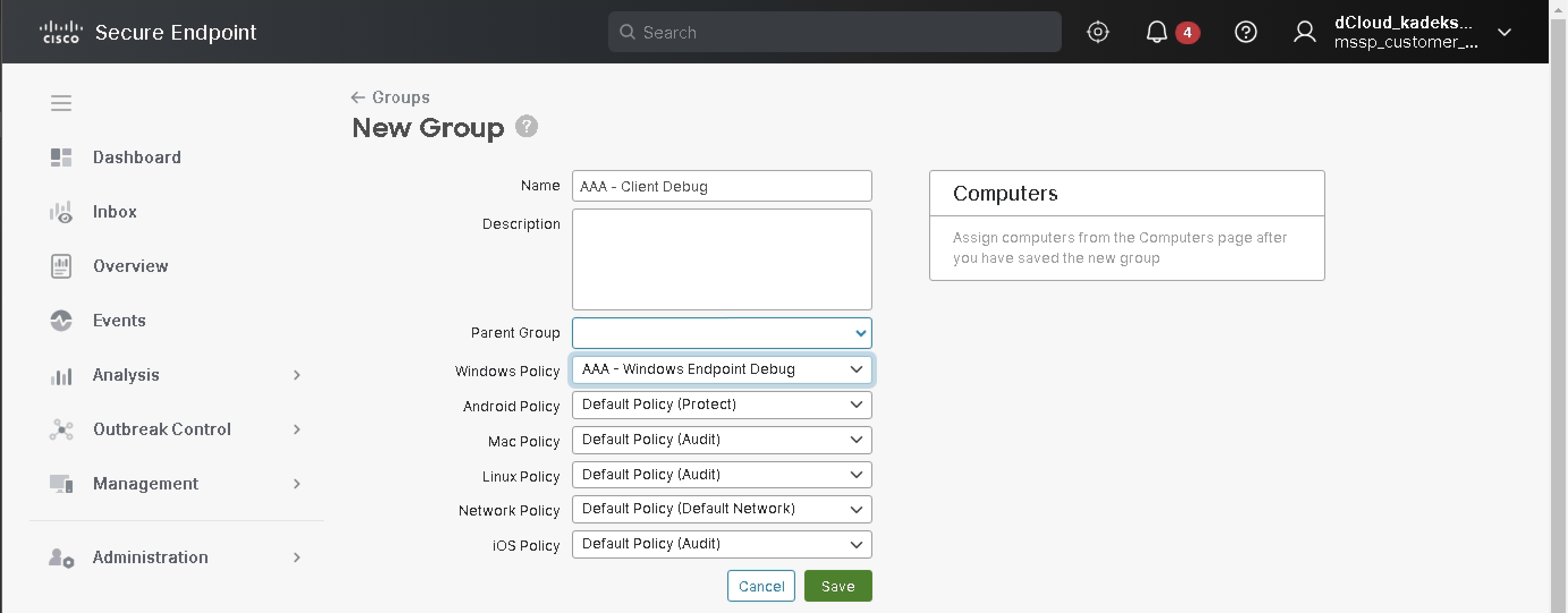 Create a new group for Client Endpoints using the Windows Policy that has juts been created