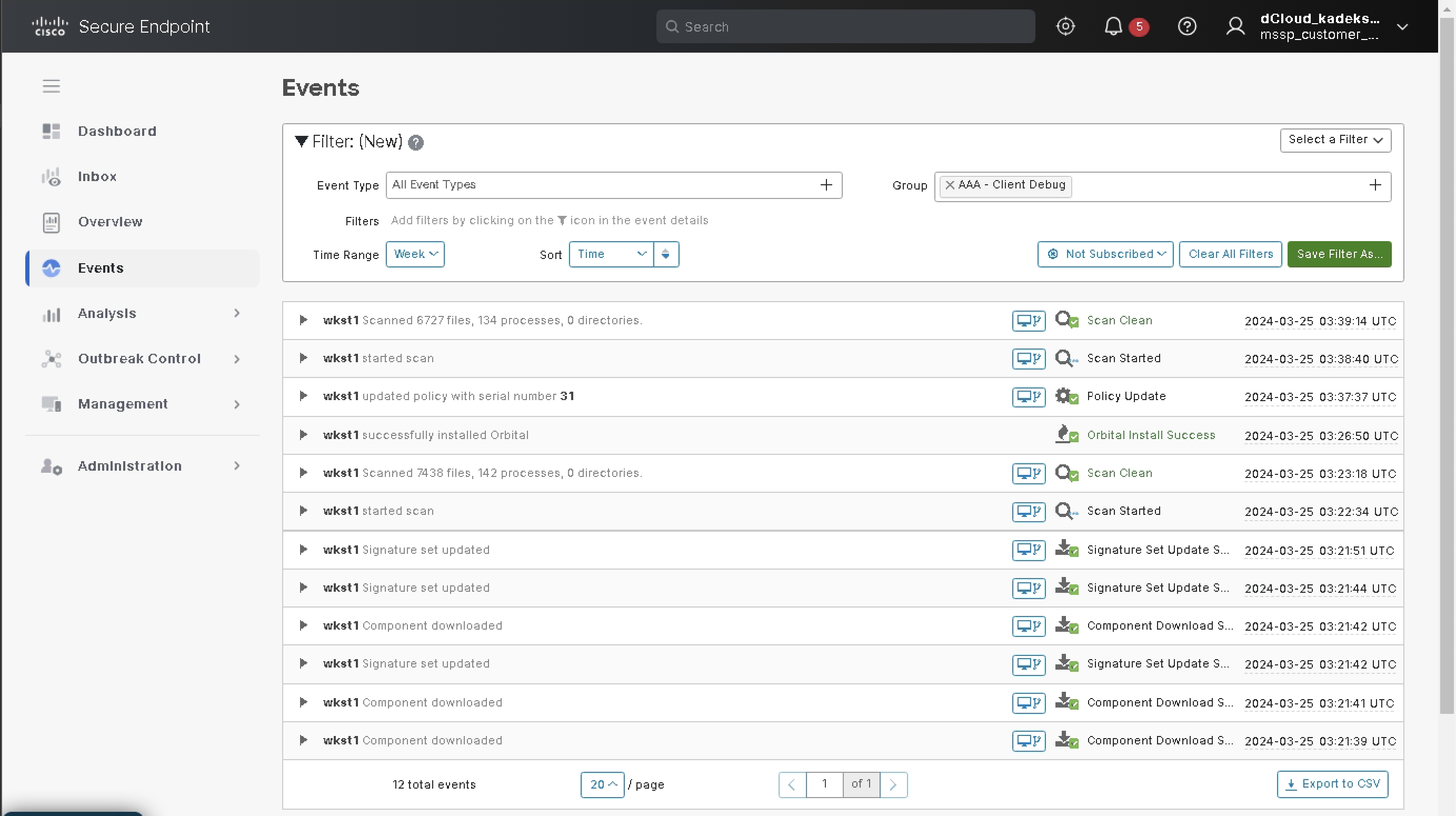 On Events, we can see all the events picked up by the CSE Connector on that particular computer