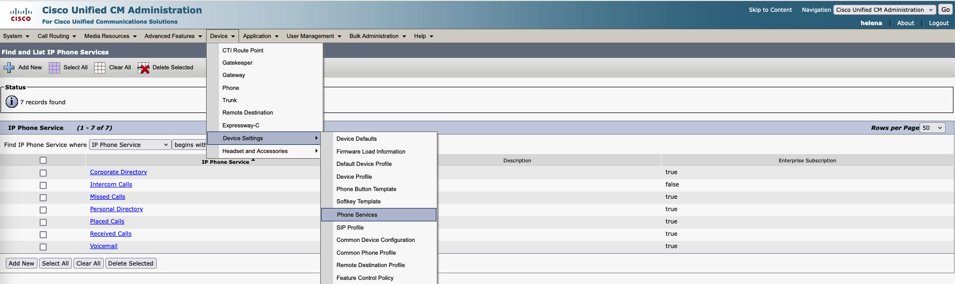 Give it a name and service URL of “http://CUCM:8080/emapp/EMAppServlet?device=#DEVICENAME#”