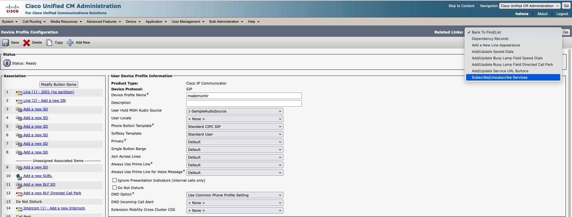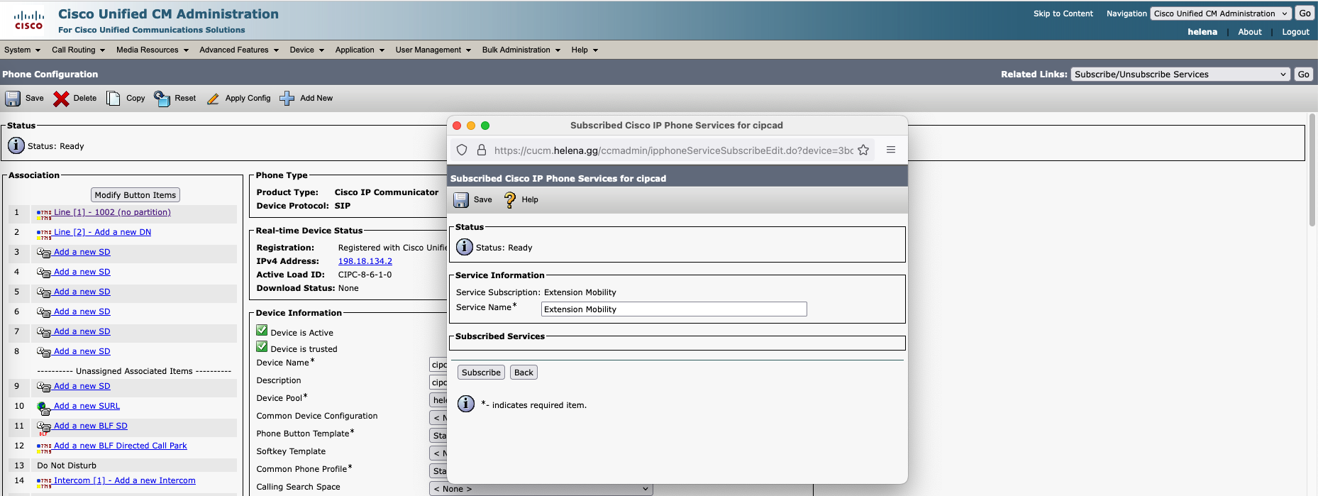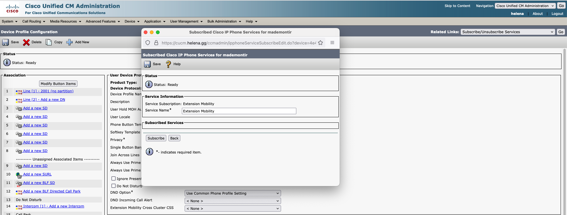 Select subscribe to the Extension Mobility that was created earlier