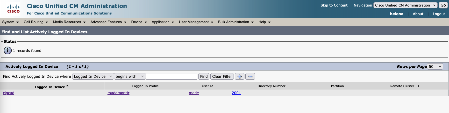On CUCM Device » Actively Logged In Devices, we can see all the users currently logged in to Extension Mobility