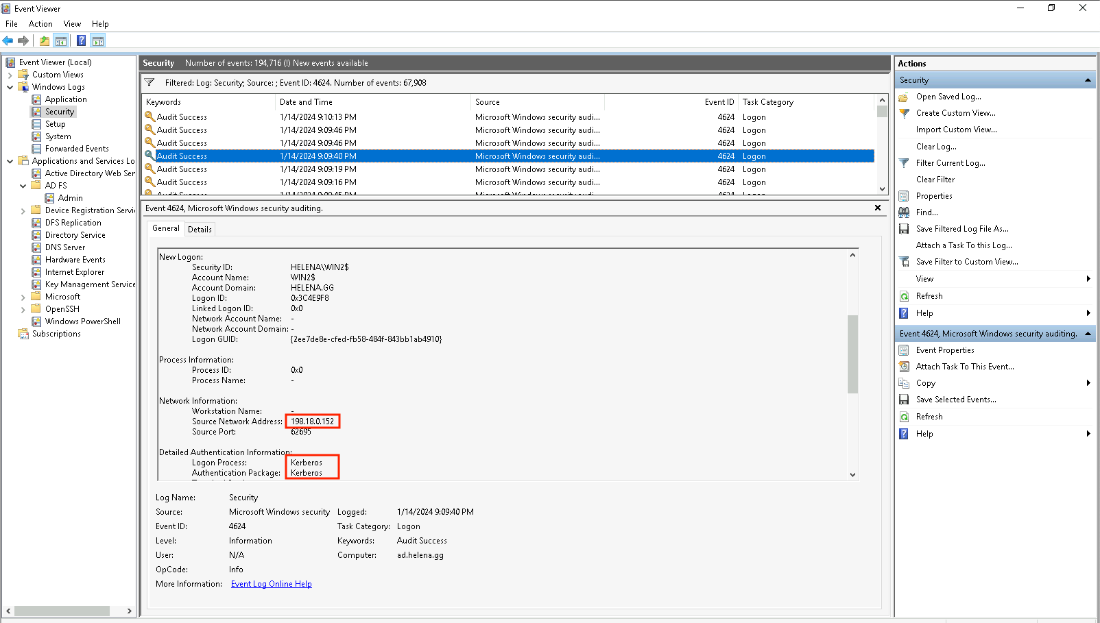 Furthermore on the ADFS Server, we can see the Event Viewer audit for every user that authenticates on the ADFS server