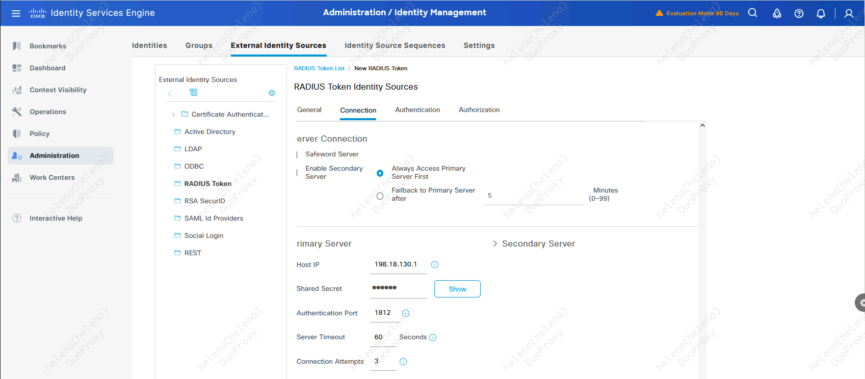 On Cisco ISE, we add a new External Identity Source of RADIUS Token
