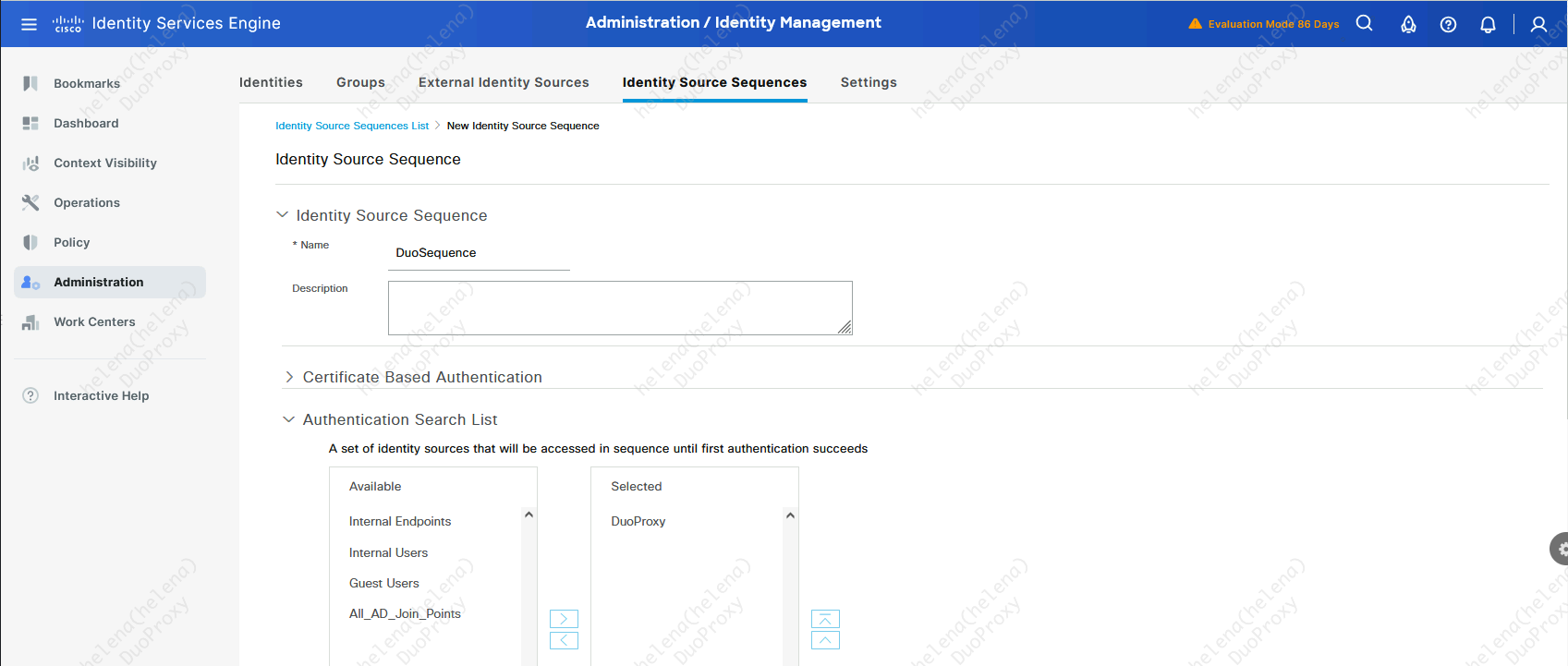 Other than for Network Access, we can also use Duo for Device Admin (TACACS), here we use the Identity Source on the Authentication of a TACACS Policy Set