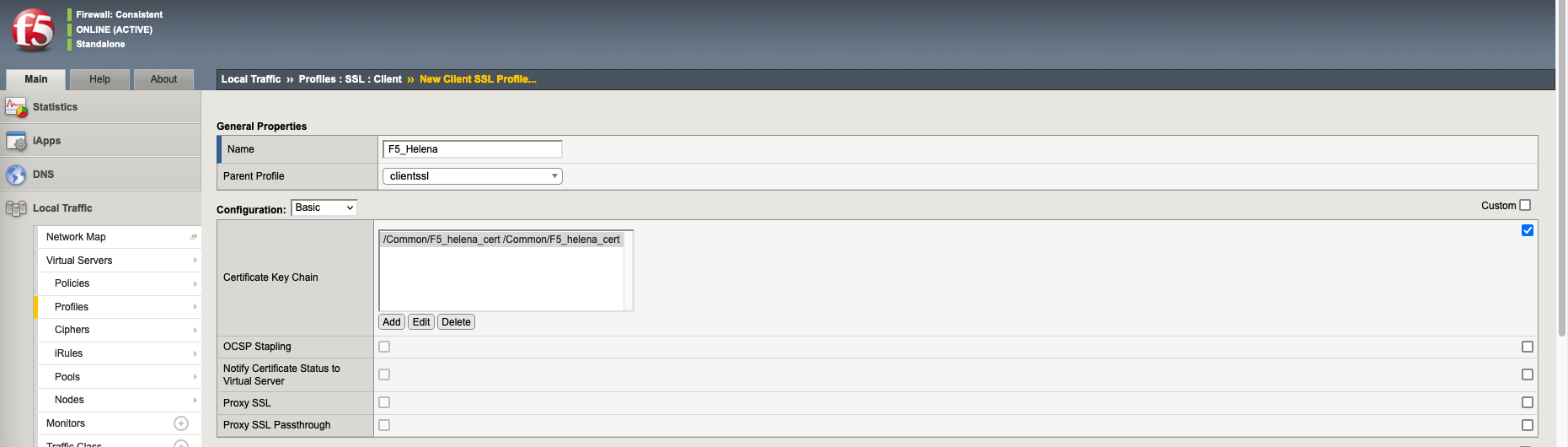 Now we create a SSL Profile that we’ll to use on the Virtual Server,