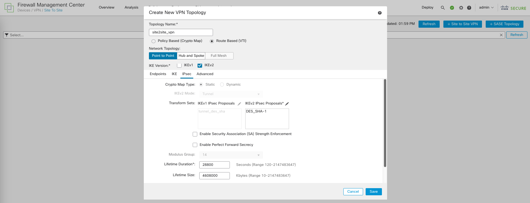 Cisco FTD Site to Site IPSec VPN with FMC