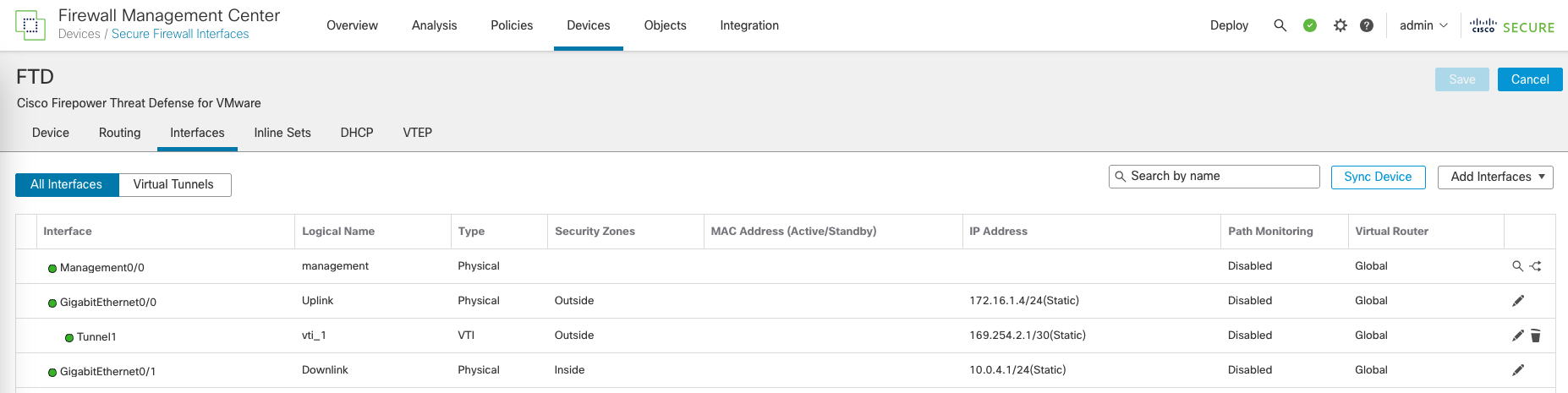 On the Device’s Interfaces, we can see a new Tunnel Interface is created
