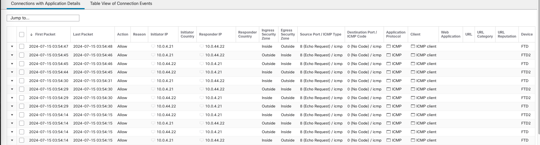 On Analysis » Events, we can see the traffic going between these two nodes