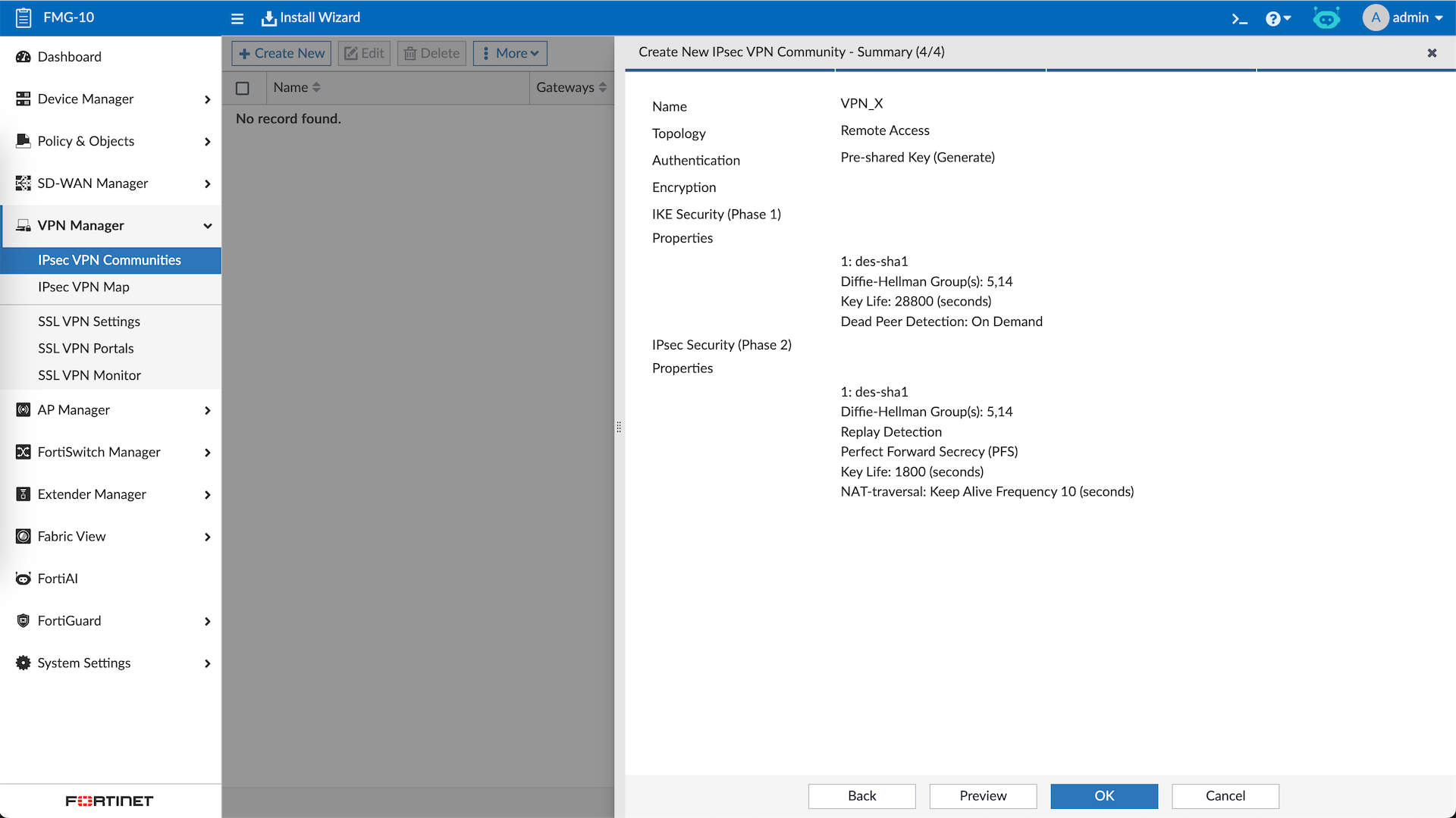 First we will create a VPN Community with Remote Access type for Dial-Up VPN.