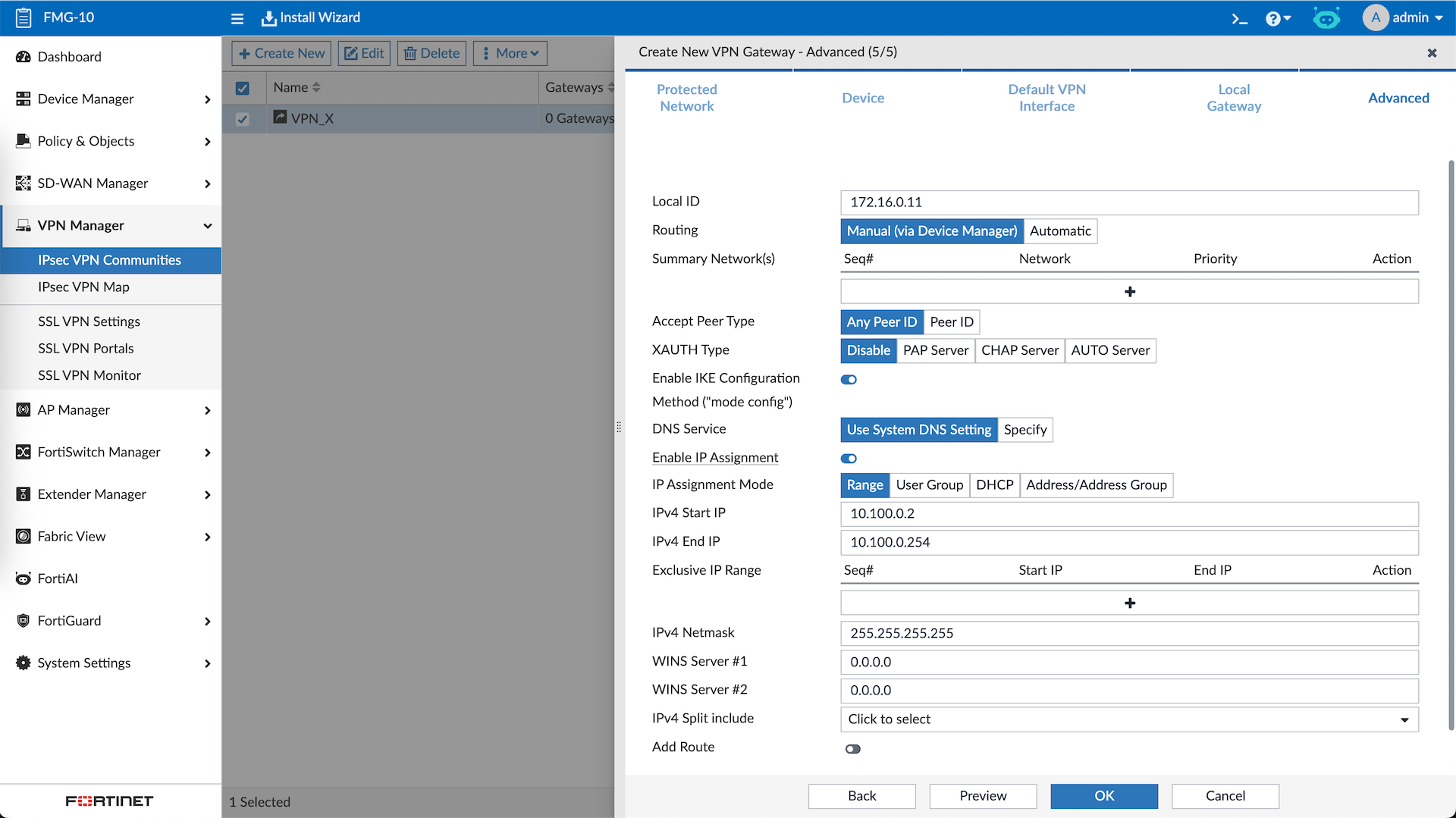 On the last step, here we configure so branches that connect to this VPN will be automatically assigned Overlay IP Address