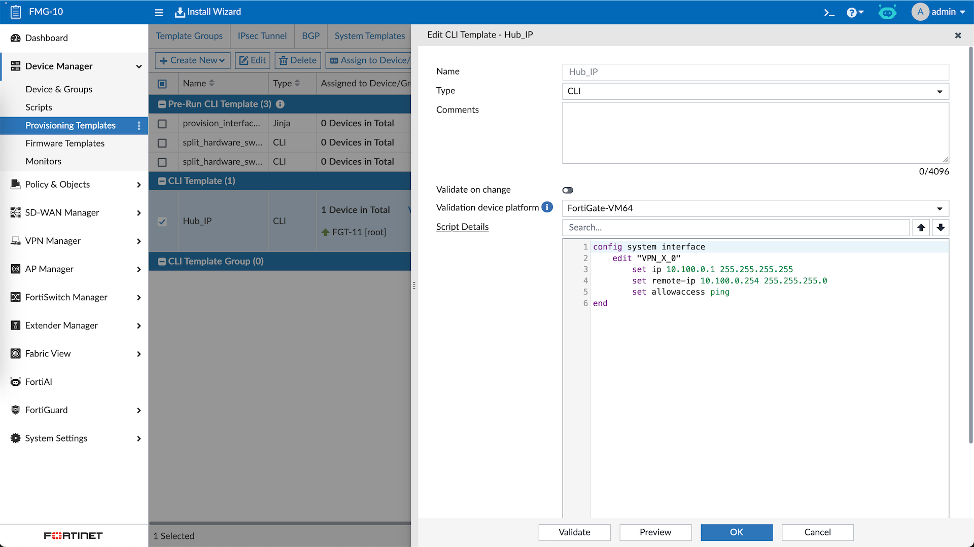 Hub’s VPN Interface will not get IP from DHCP, so having a CLI Template to configure that automatically is a nice thing to have