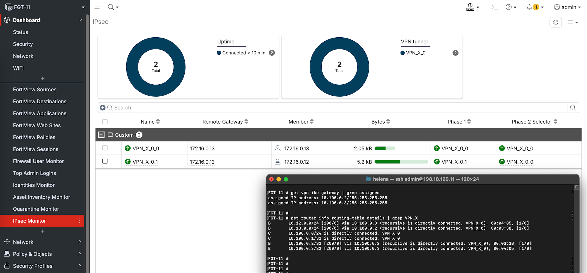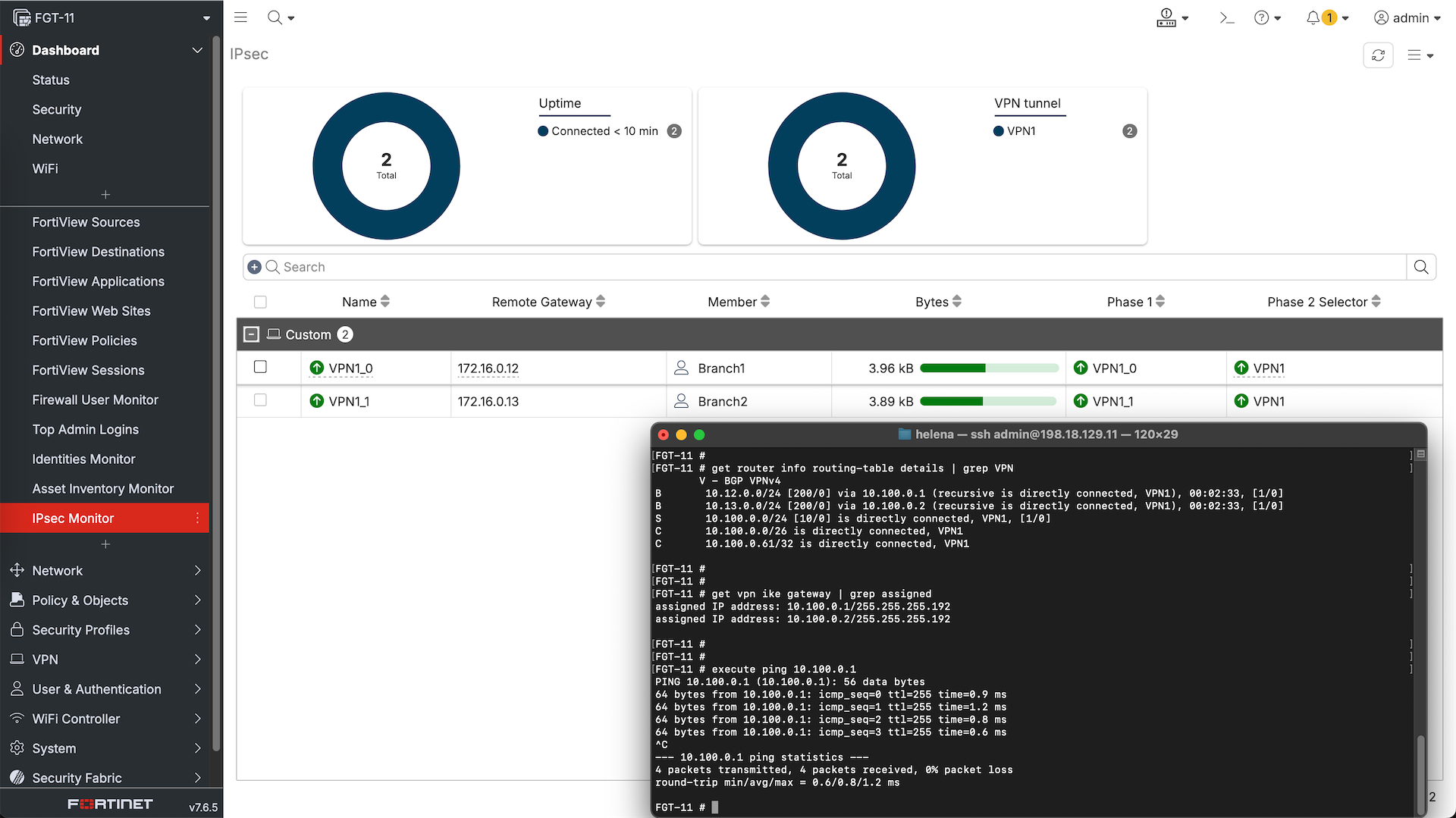 And just like that now we have a working Hub-and-spoke Dial-up VPN with internal BGP