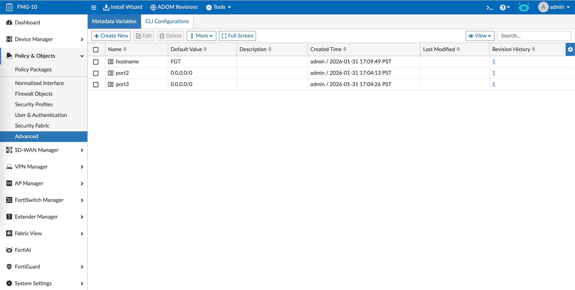 Provisioning templates are predefined configuration sets used to automatically apply standard settings (such as interfaces, routing, and security profiles) to multiple devices. Before we dive in into the templates, we will create some Metada Variables