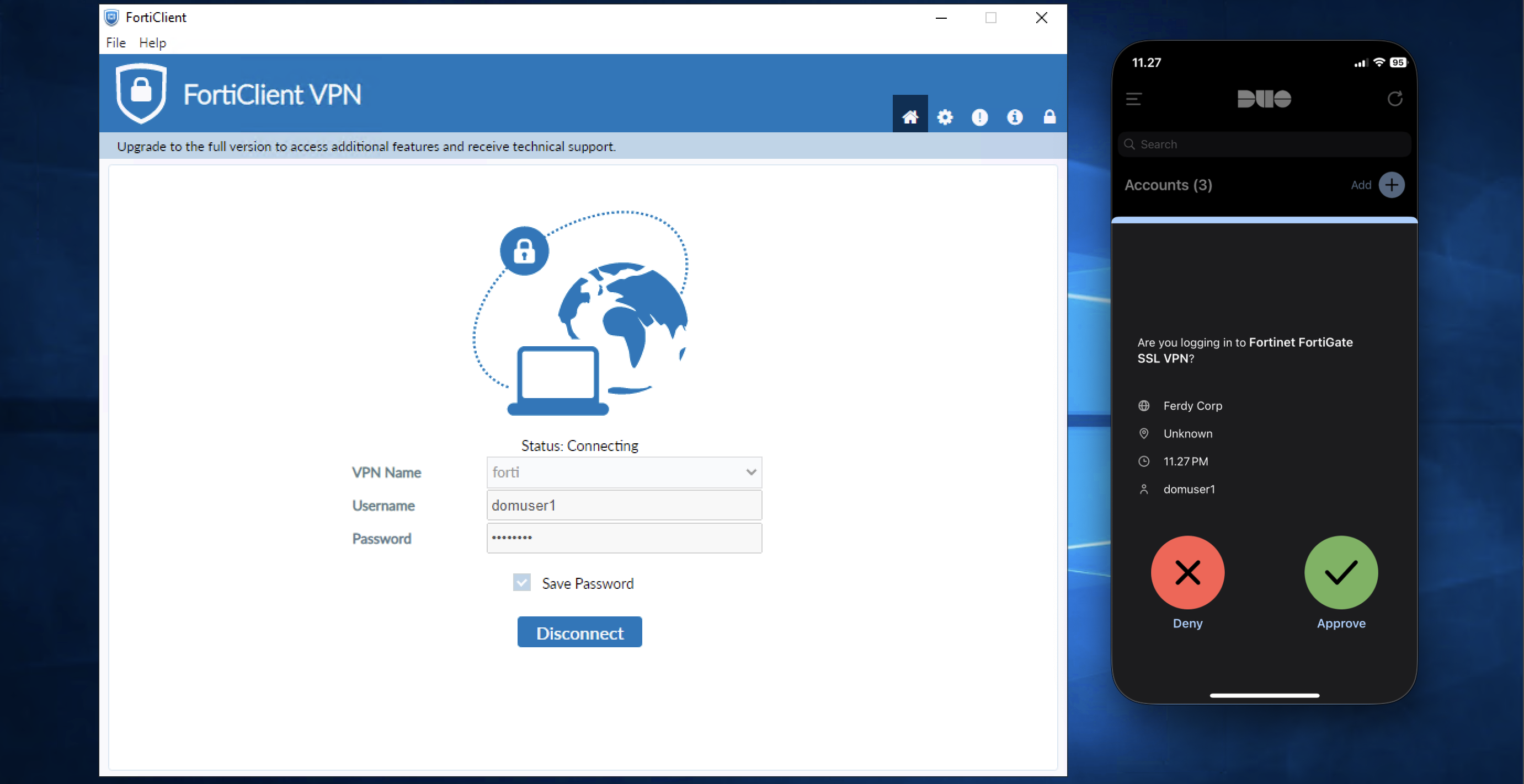 And now if we connect to VPN using AD users, we’ll be prompted a Duo MFA