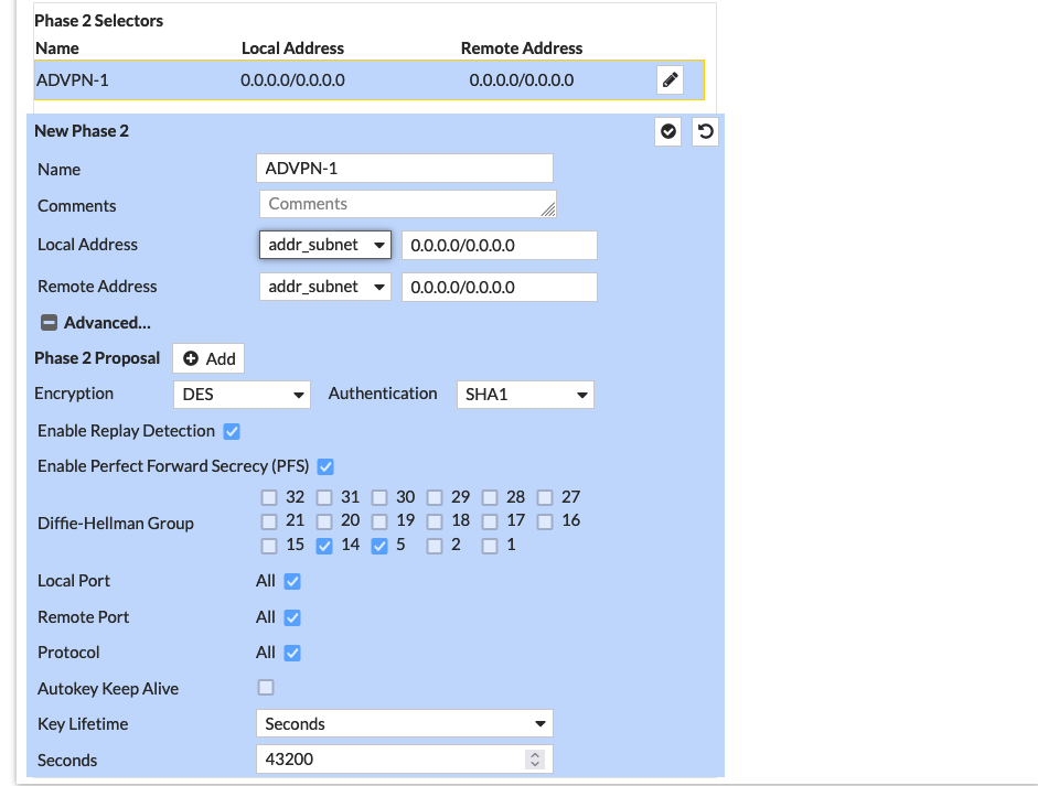 Configure the Pre-shared Key and Phase 1 Proposal as needed